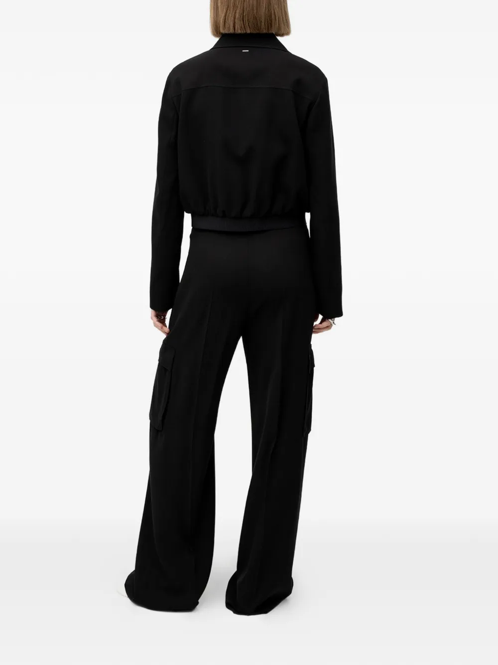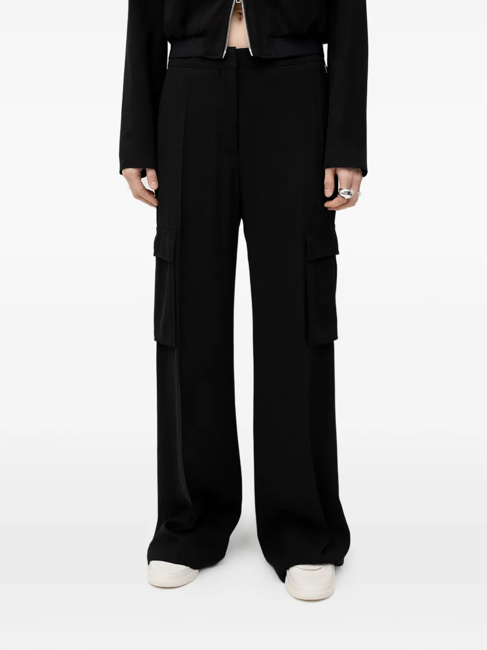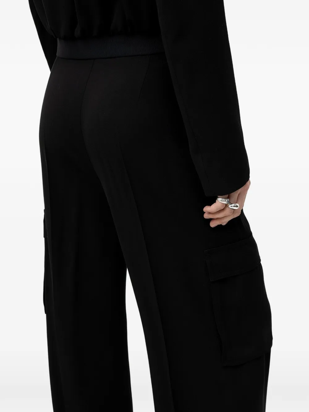 Черные широкие брюки с завышенной талией и боковыми клапанами на карманах
