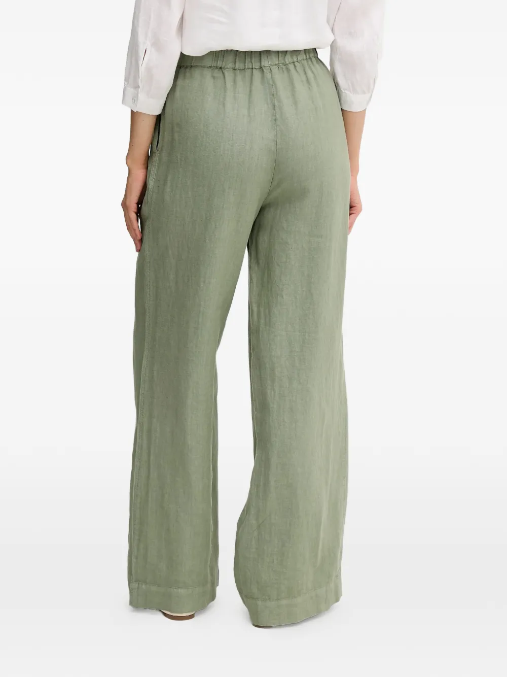 Светло-зеленые широкие брюки с эластичным поясом и прорезными карманами