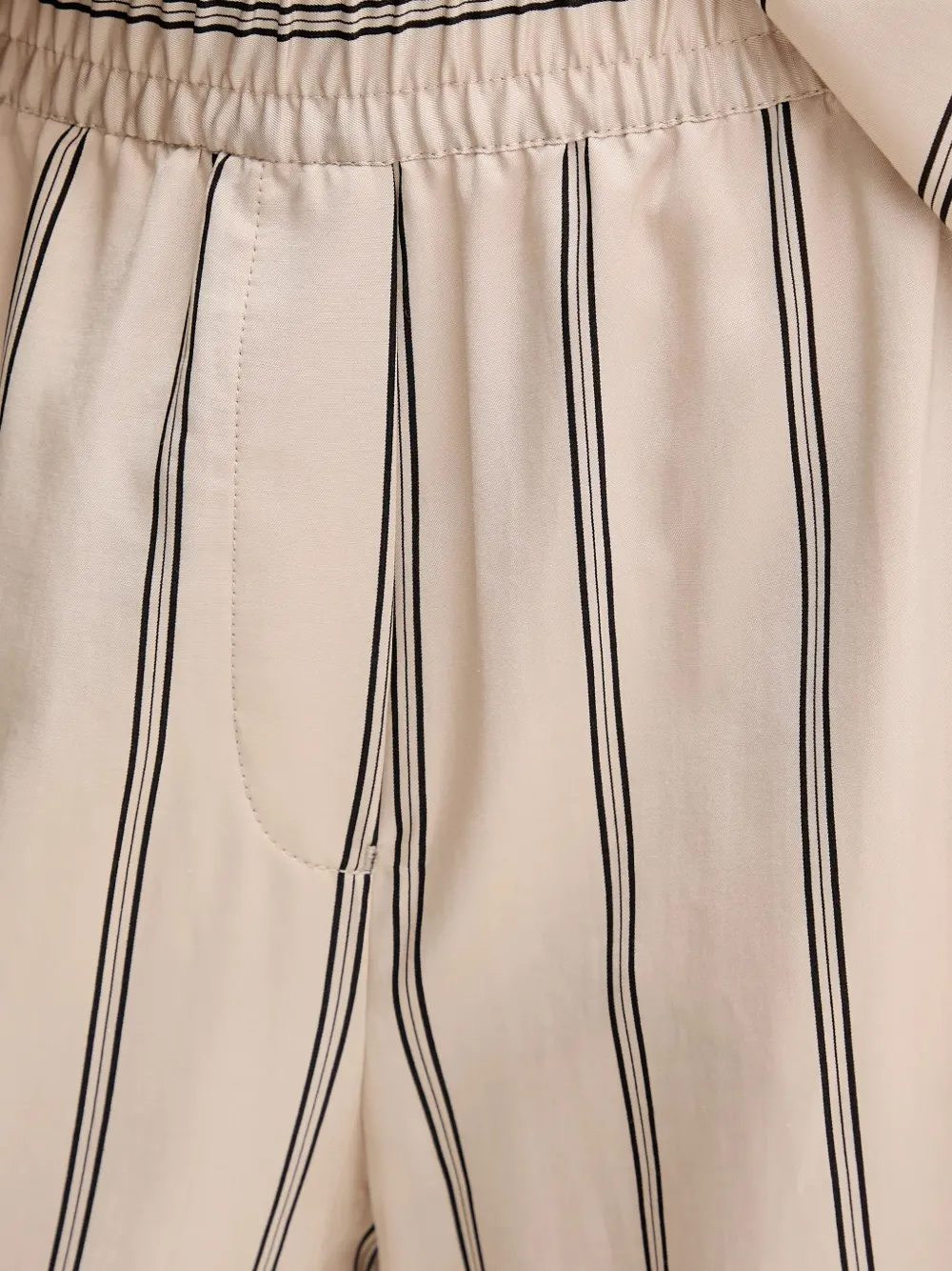 Бежевые широкие брюки в полоску с эластичным поясом и задним карманом