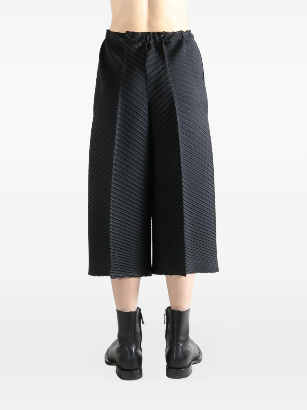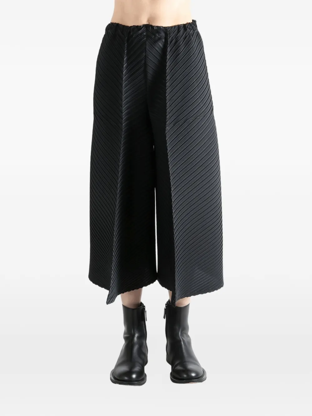 Черные плиссированные широкие укороченные брюки на эластичном поясе