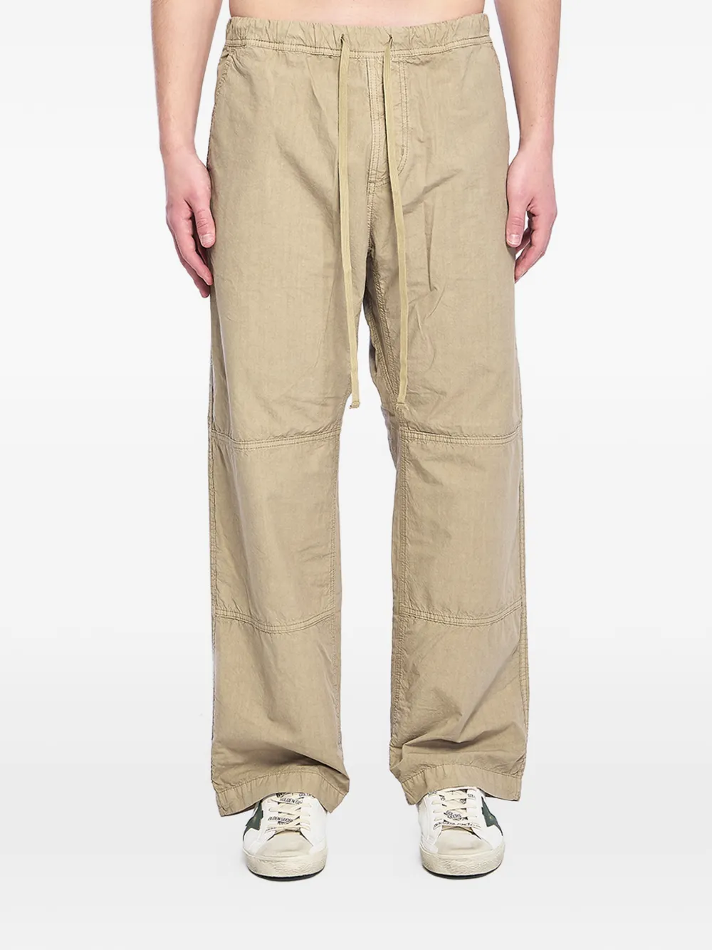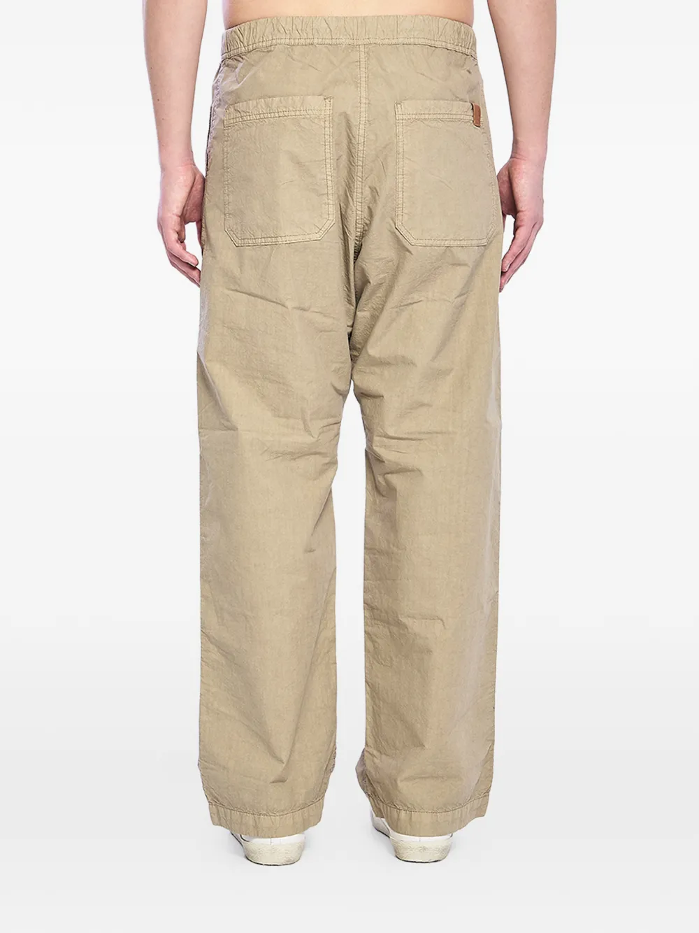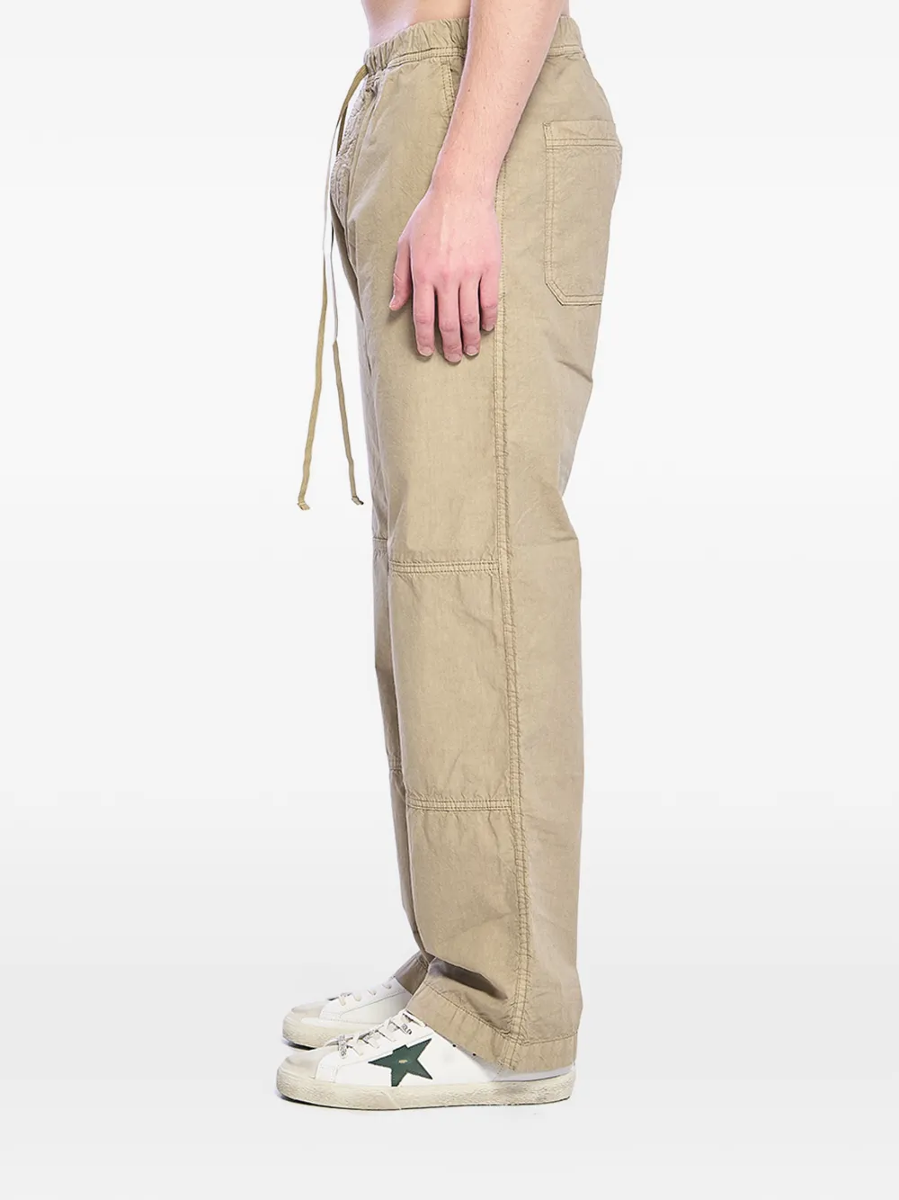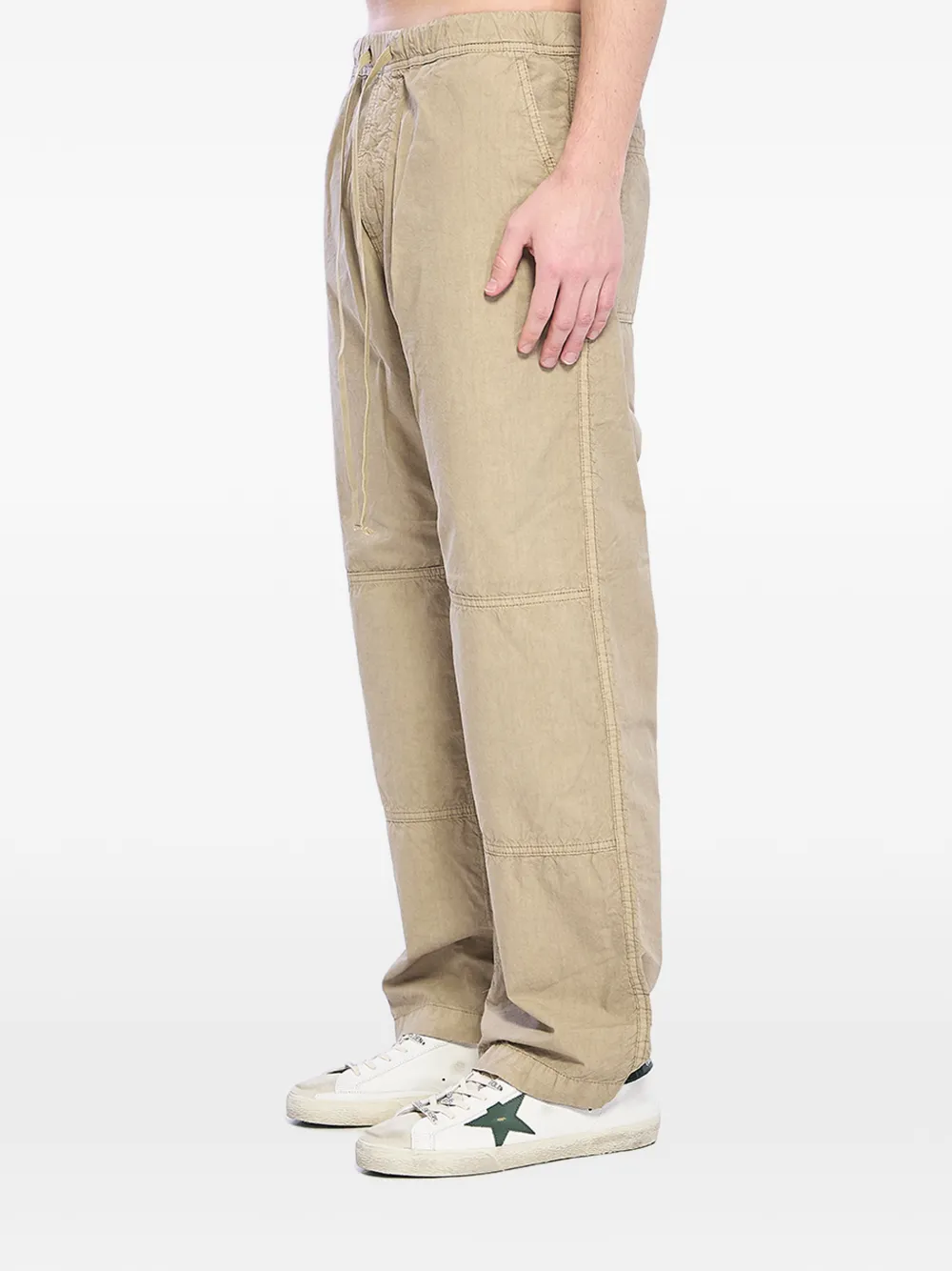 Бежевые, пояс на шнурке, два боковых кармана, два накладных кармана