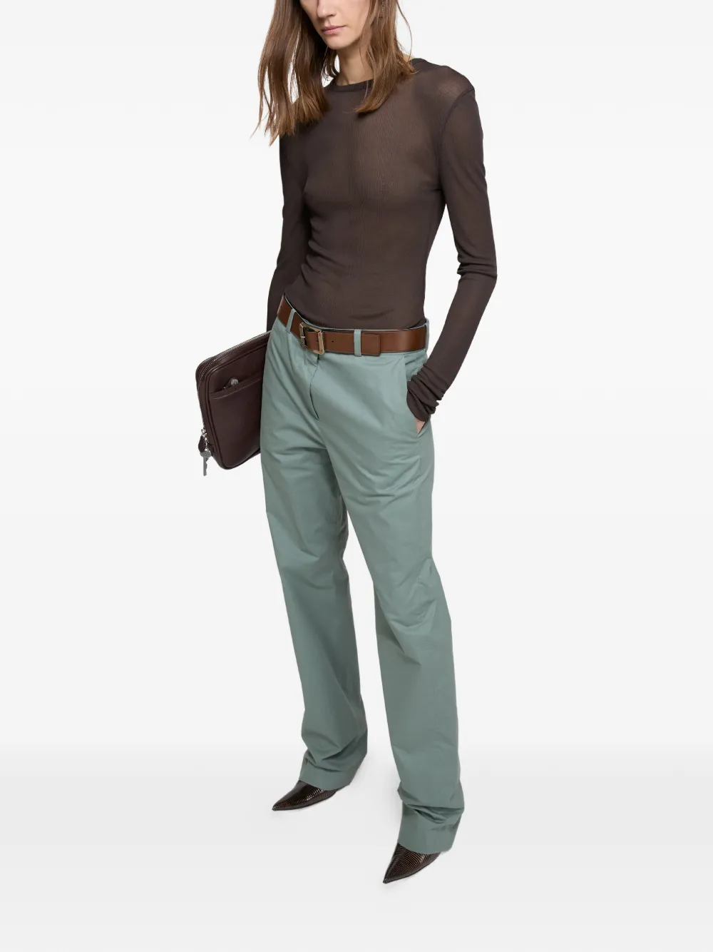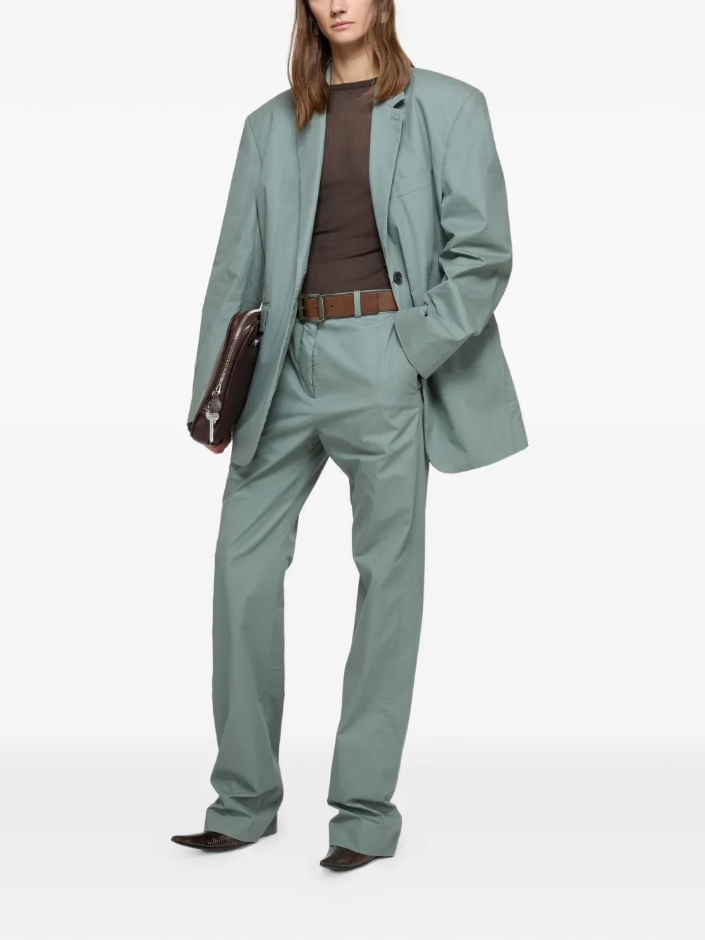 Зеленые шлевки для ремня, застежка на пуговицах, прорезные карманы