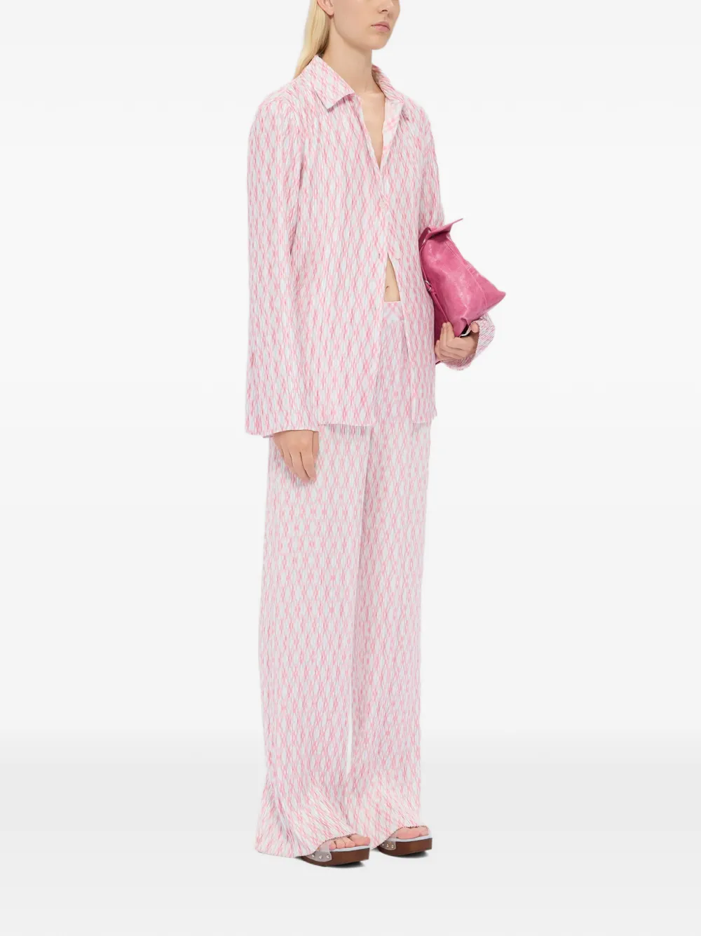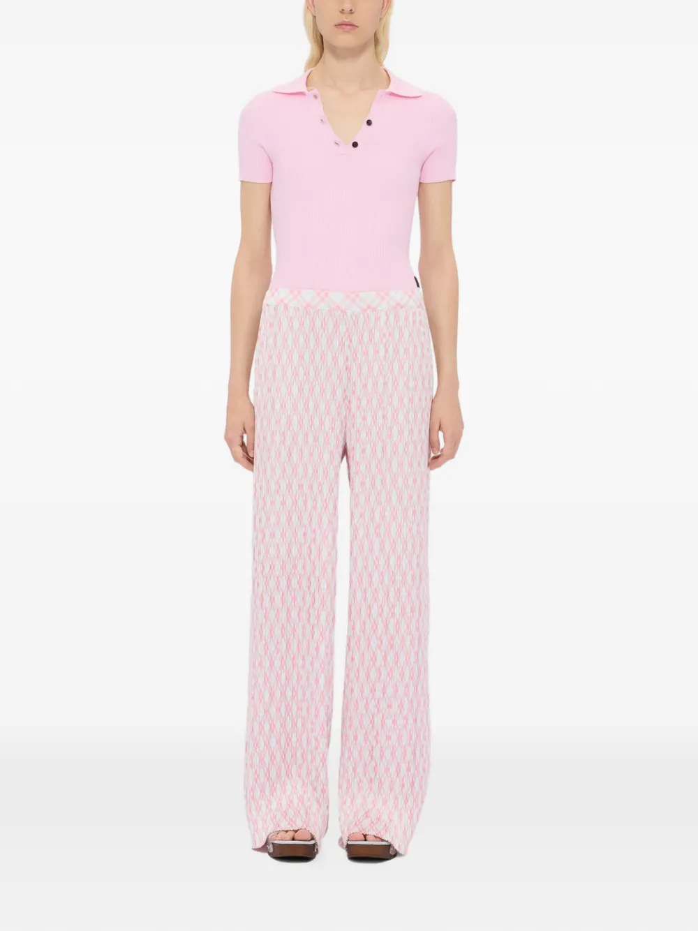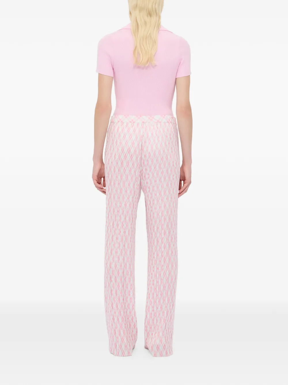 Светло-розовые широкие брюки в клетку с плиссированным дизайном