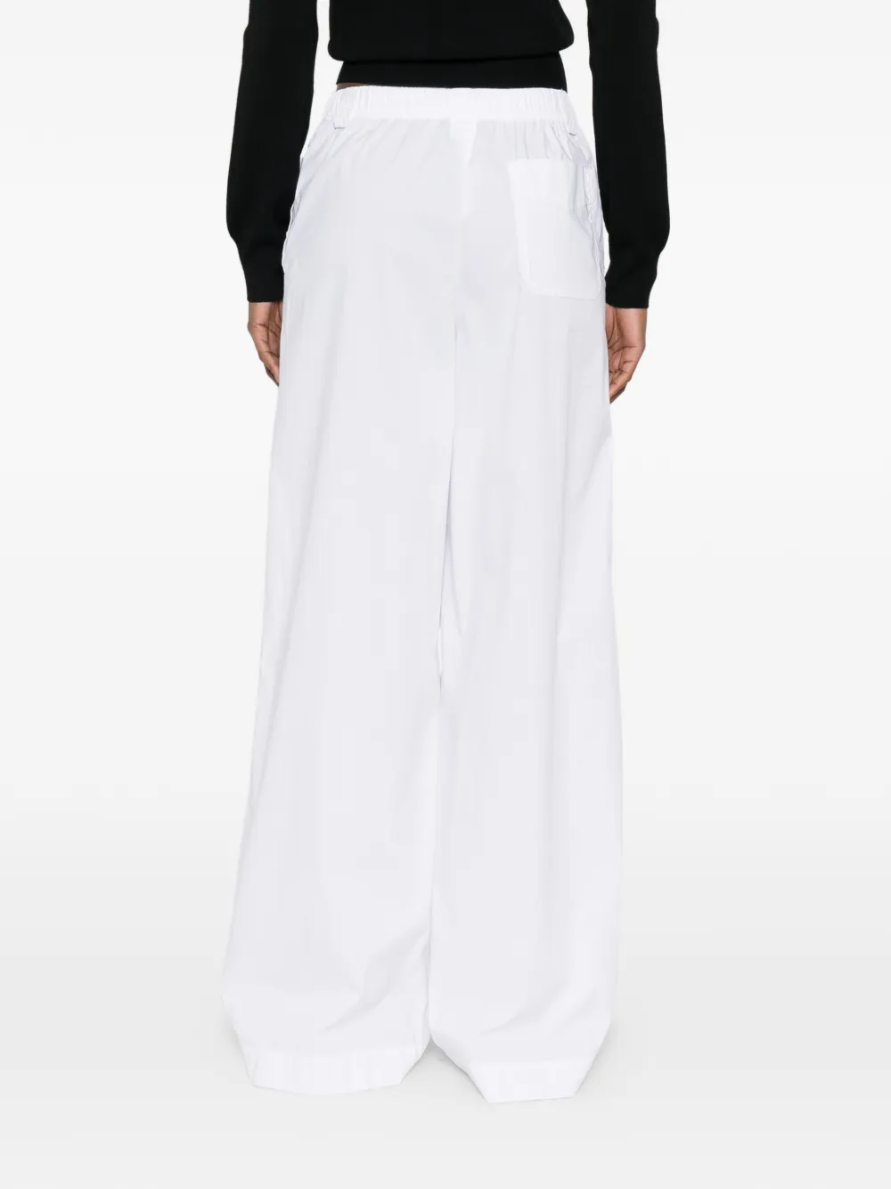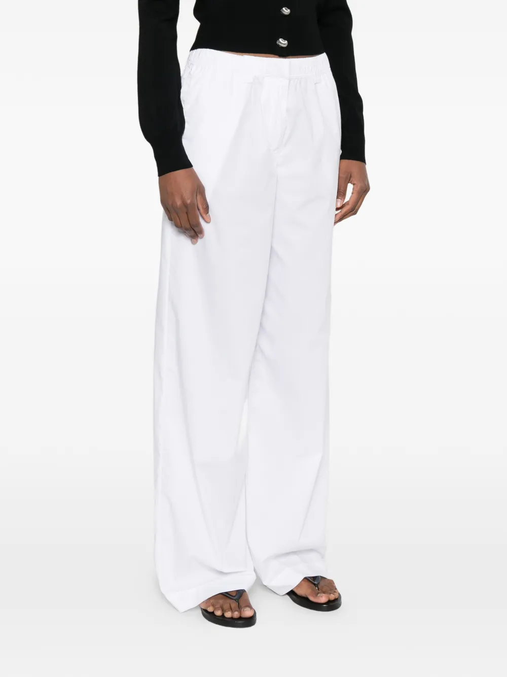Белые широкие брюки с эластичным поясом и шлевками для ремня