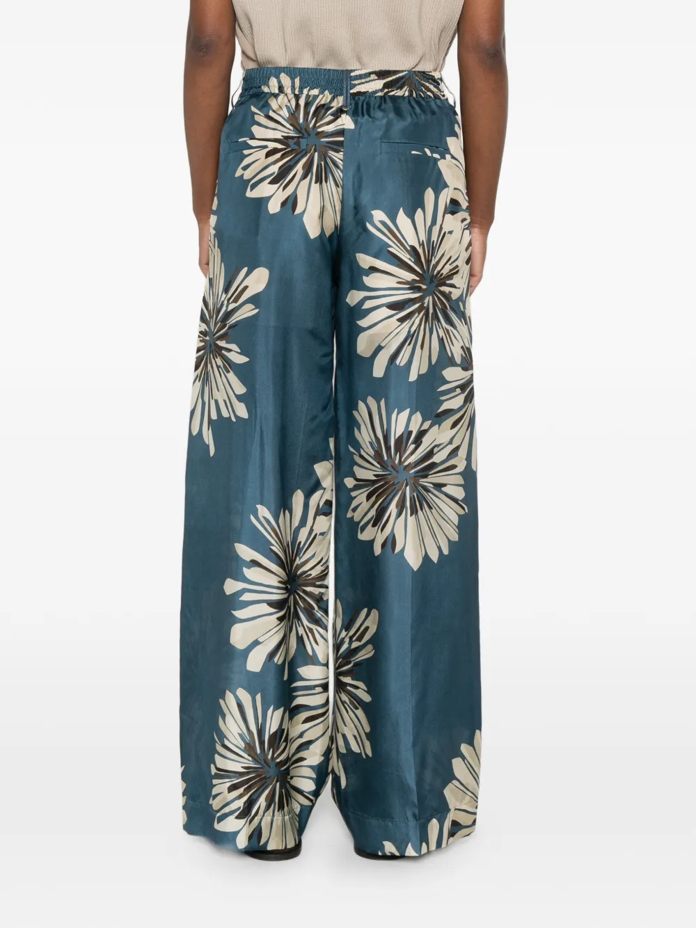 Синий с цветочным принтом, эластичный пояс, боковые карманы