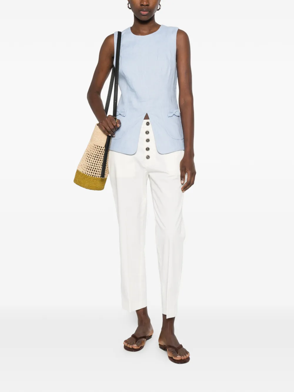 Белые брюки с застежкой на пуговицы и шлевками для ремня