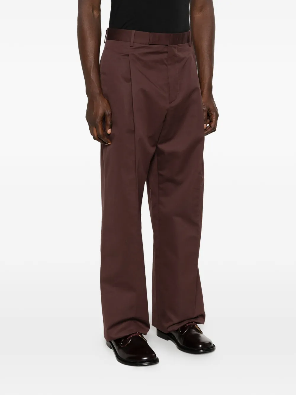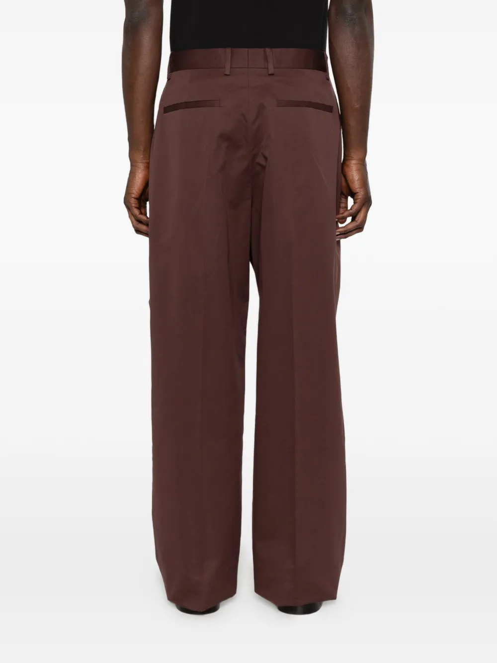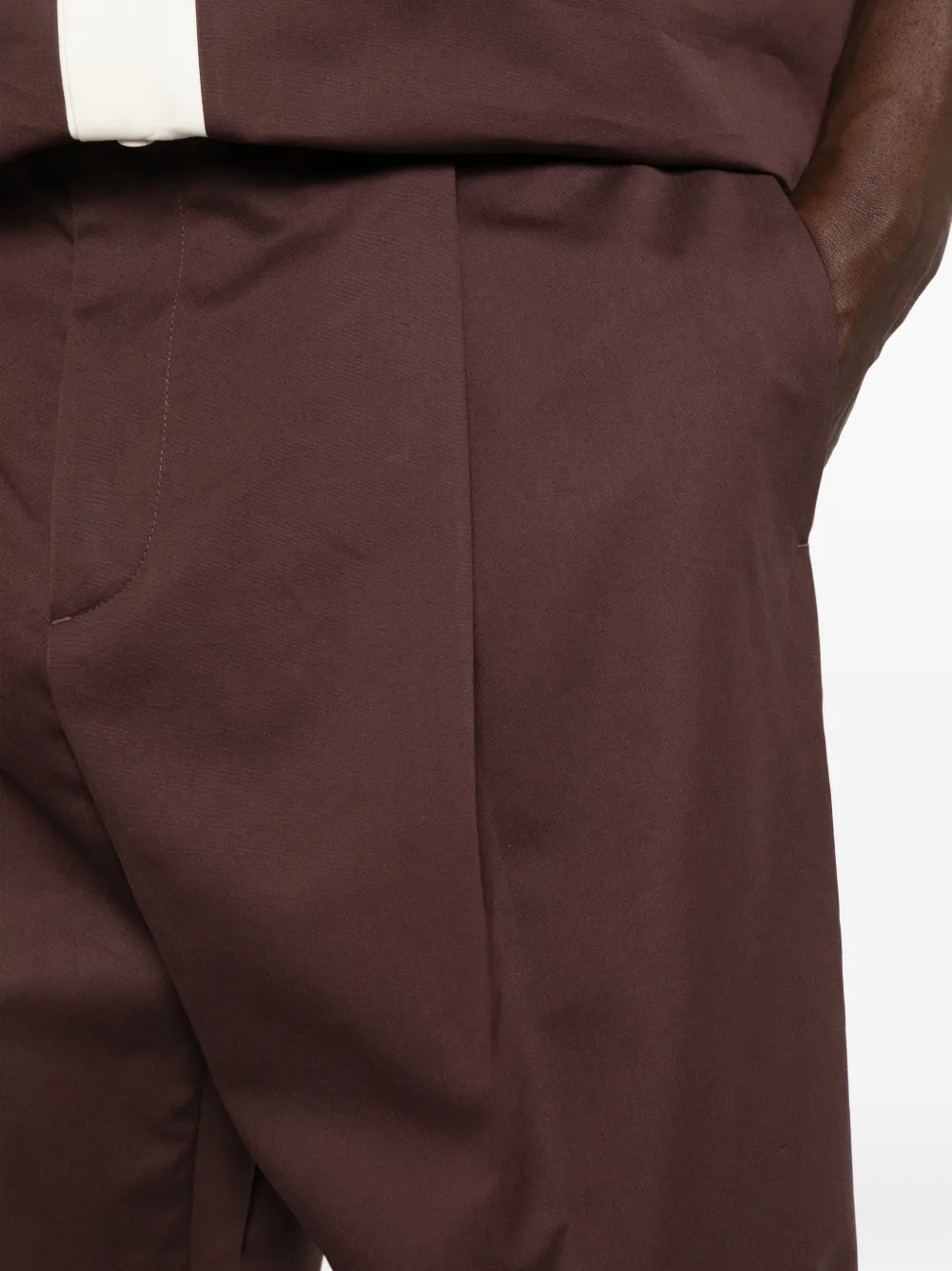 Коричневые шлевки для ремня, складки, боковые карманы