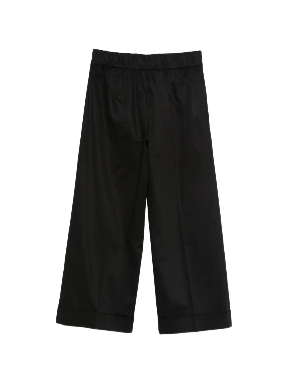 Черные укороченные широкие брюки на эластичном поясе