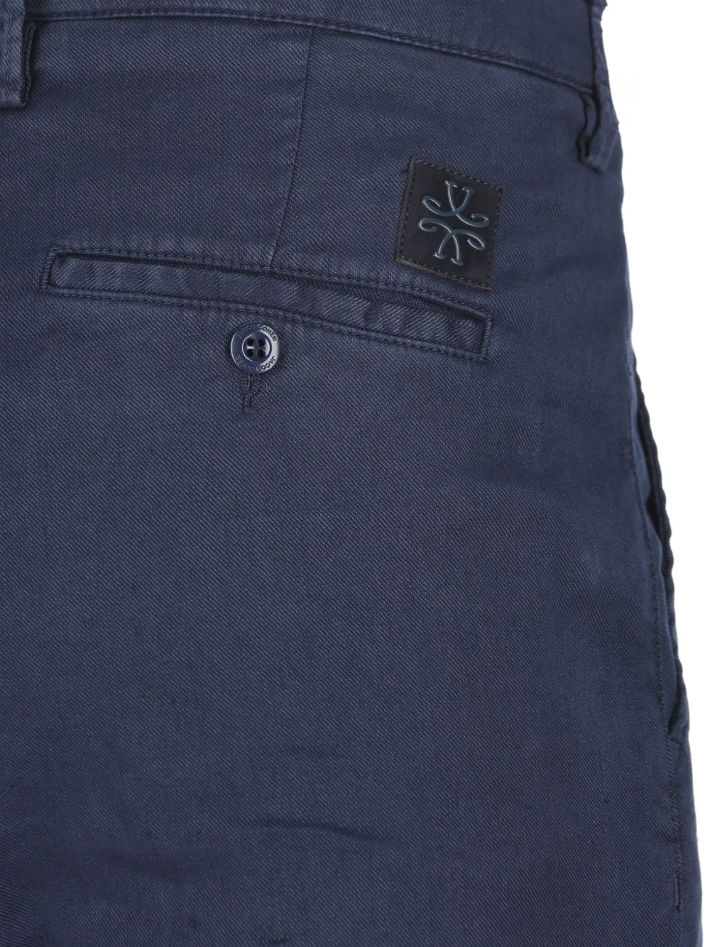 Синий с застегивающимся на пуговицу задним карманом