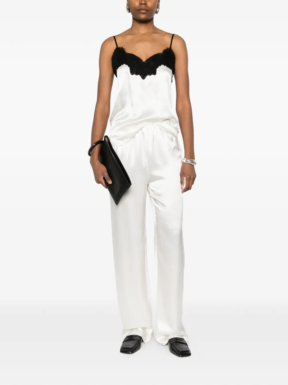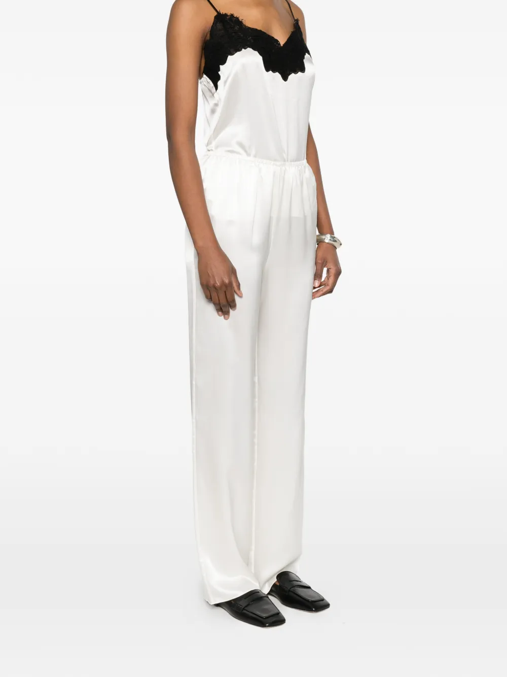 Прямые брюки цвета айвори с эластичным поясом