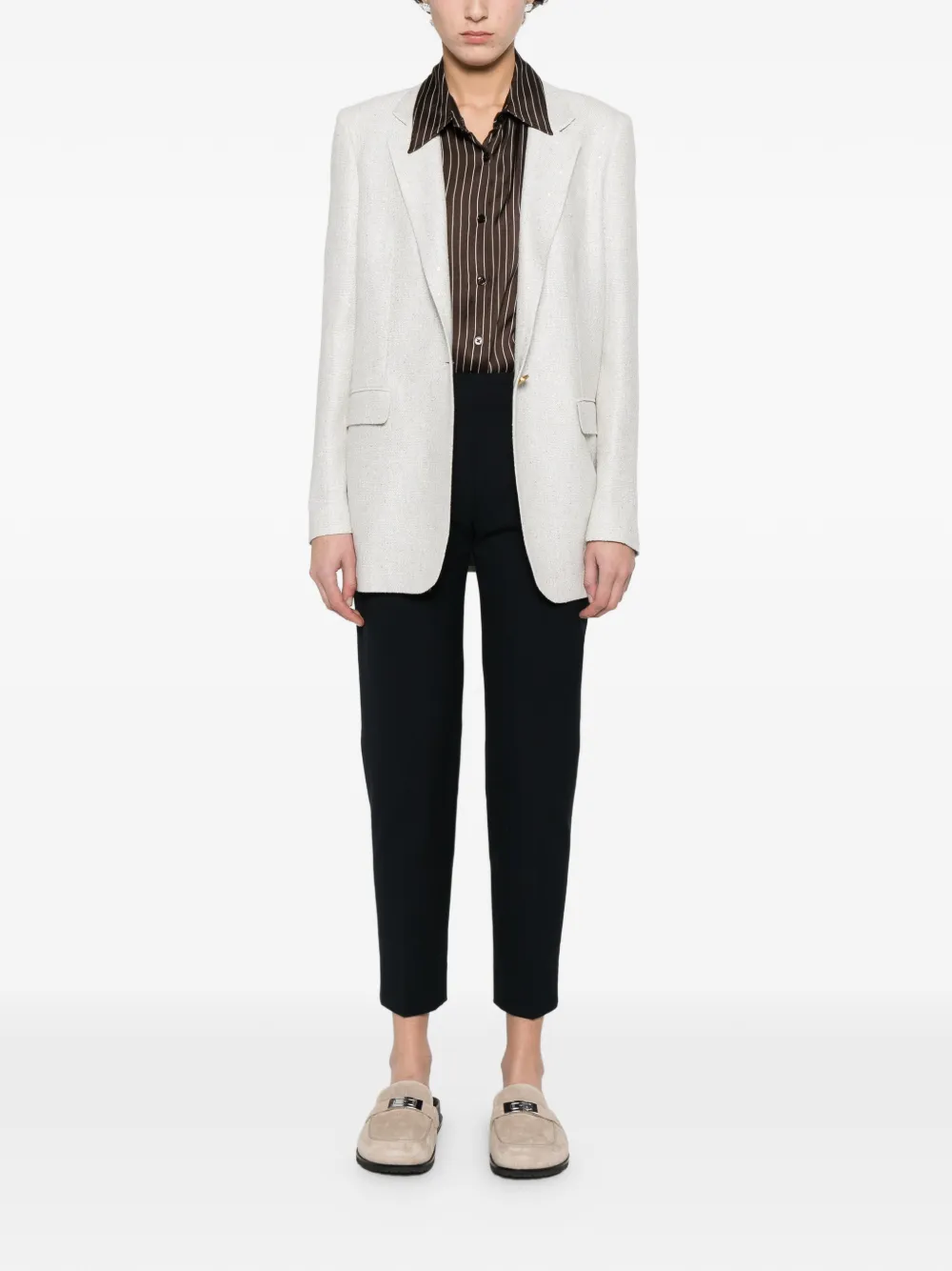 Синие прямые брюки с накладными карманами
