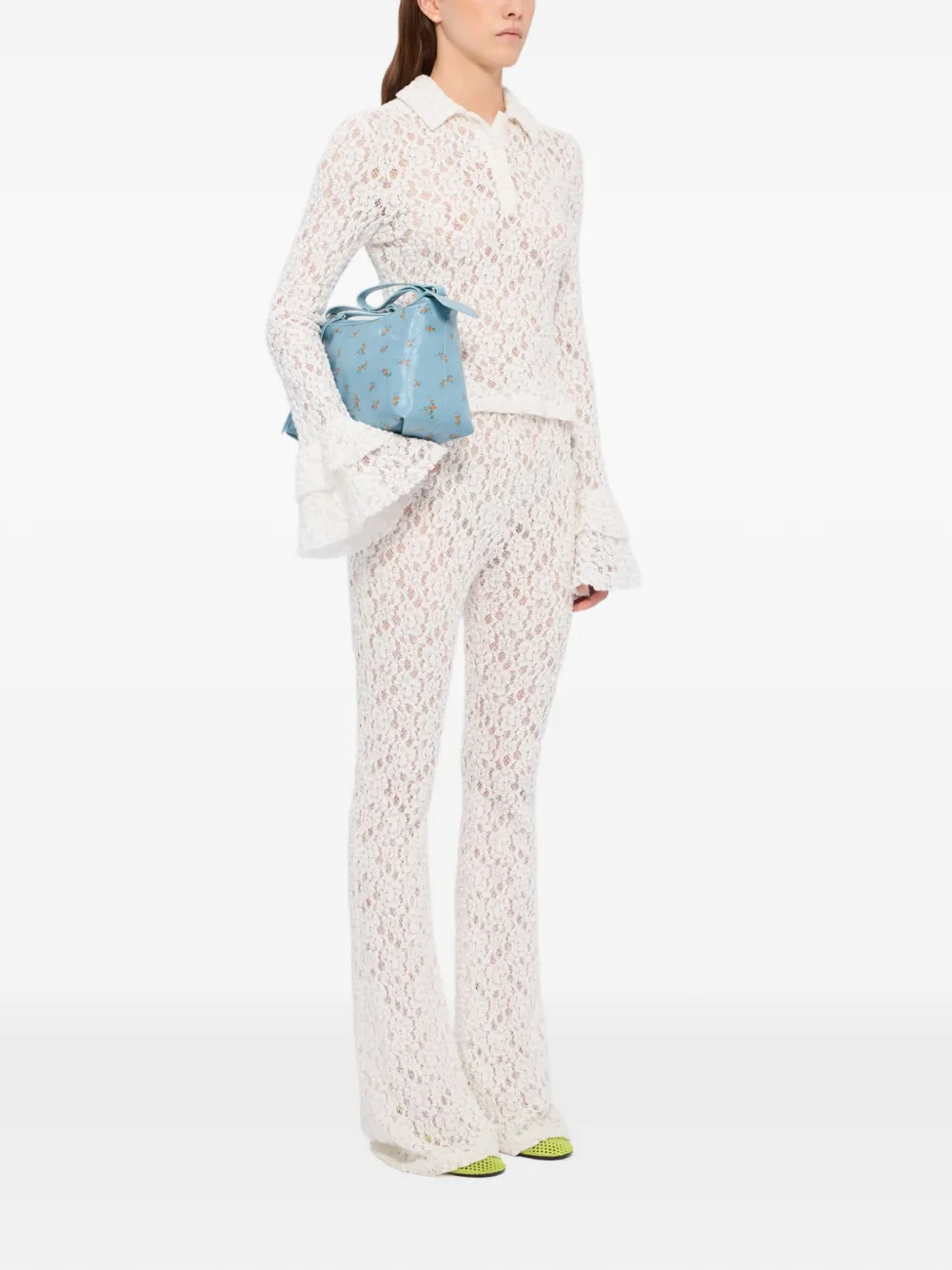 Кружевные расклешенные брюки Msgm, белый