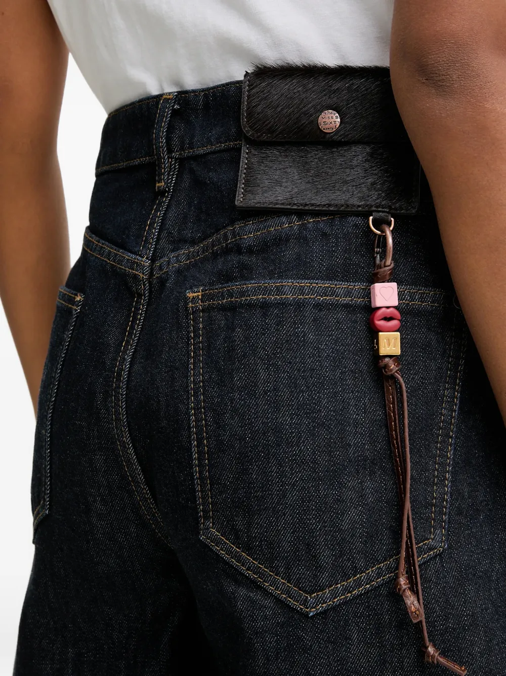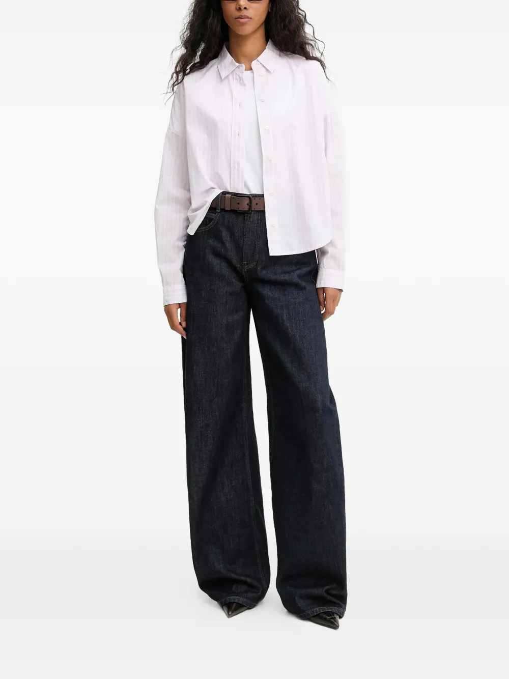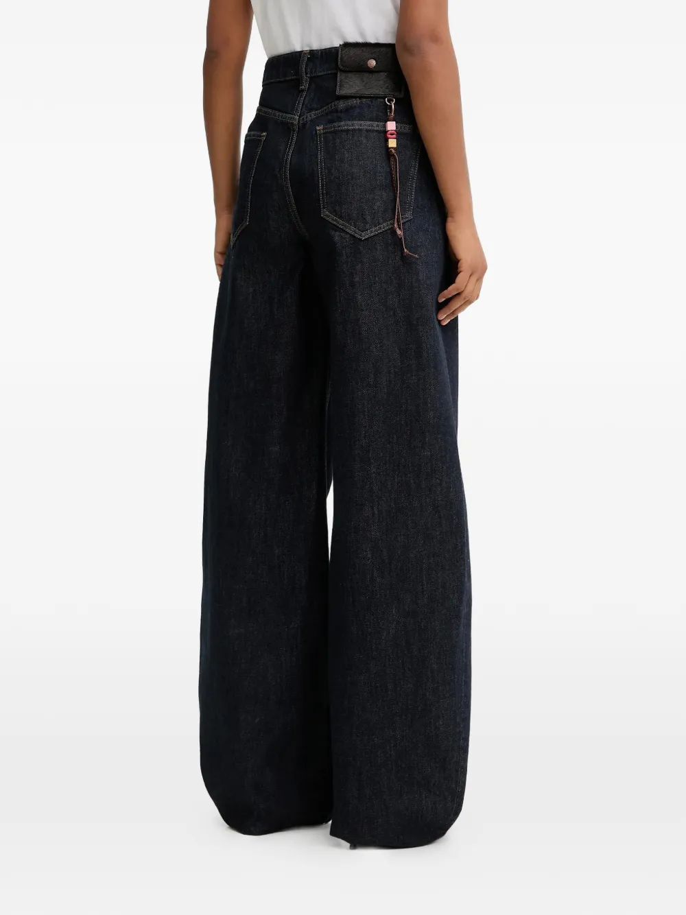 Темно-синие широкие брюки с задними накладными карманами и шлевками для ремня