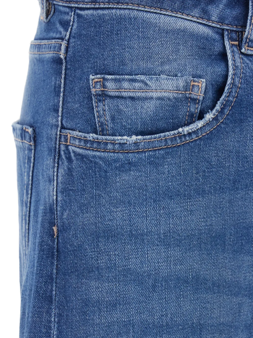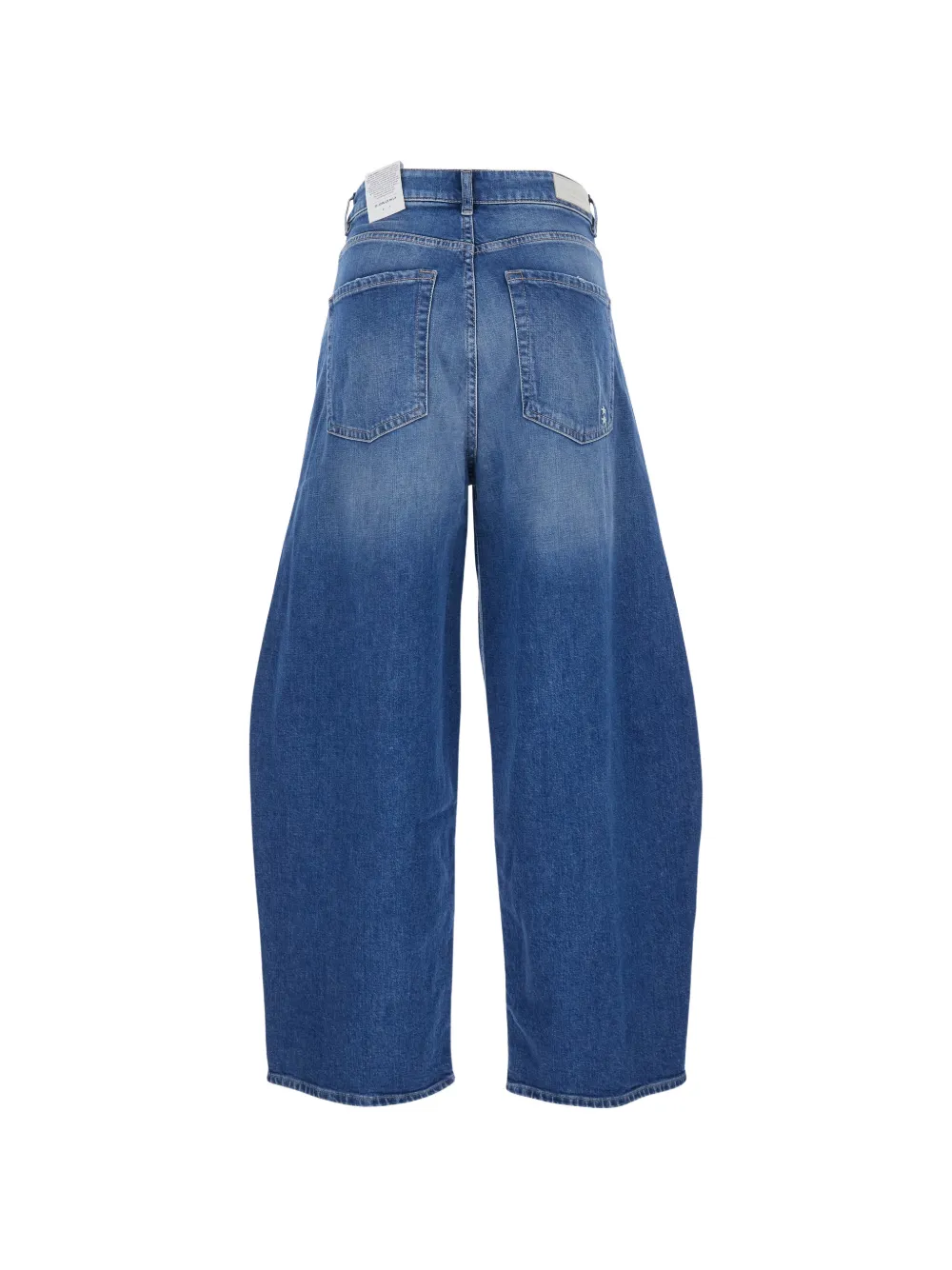 Синие широкие брюки с пятью карманами и отделочной строчкой