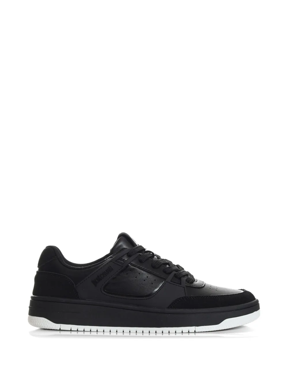 Черный цвет, панельный дизайн, перфорированные детали, шнуровка, круглый нос, плоская резиновая подошва