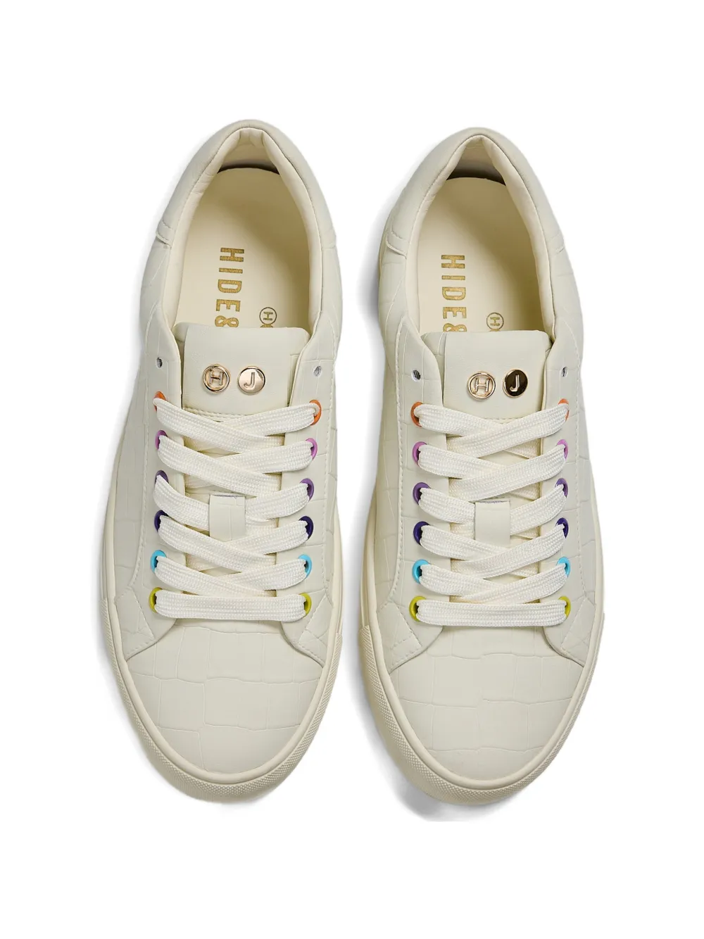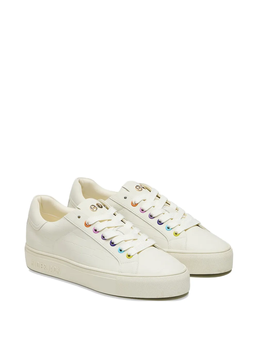 Белая обувь с тиснением под крокодила, люверсами, фирменным логотипом и плоской подошвой