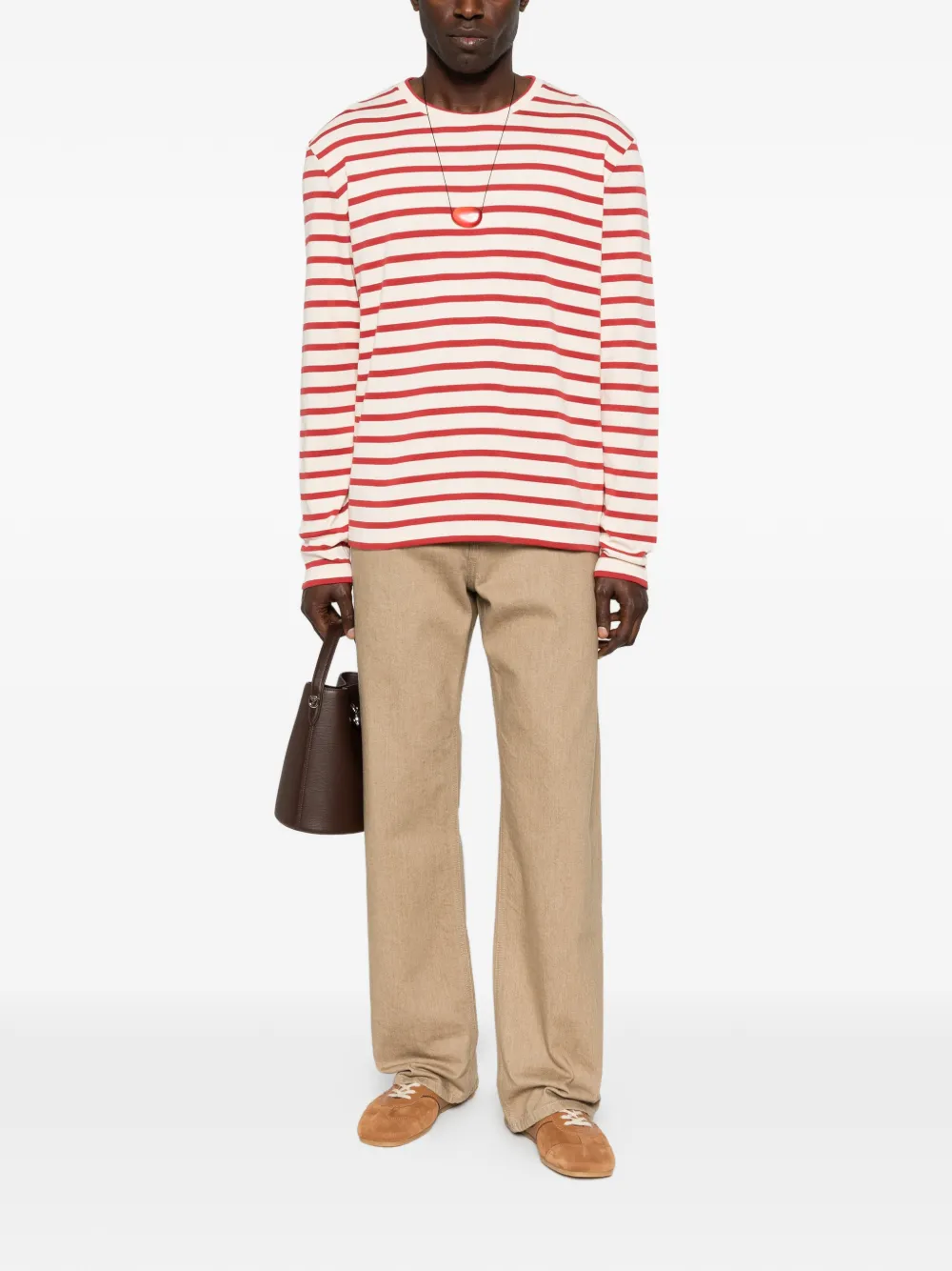 Бежевый и красный в полоску, с длинными рукавами и круглым вырезом