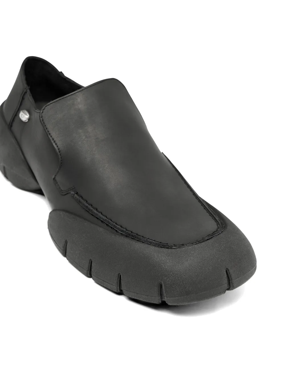 Черная кожаная обувь с вощеным покрытием, логотипом и дизайном без застежки