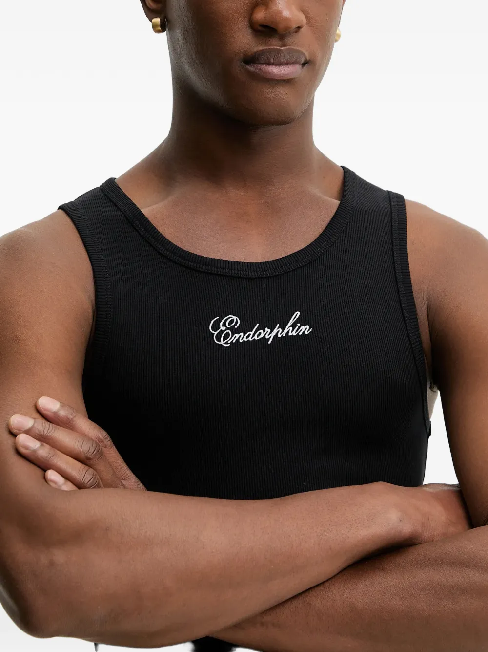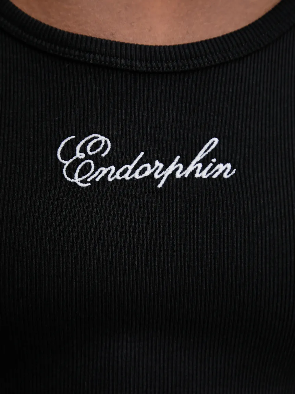Черный топ без рукавов с ребристой текстурой и круглым вырезом