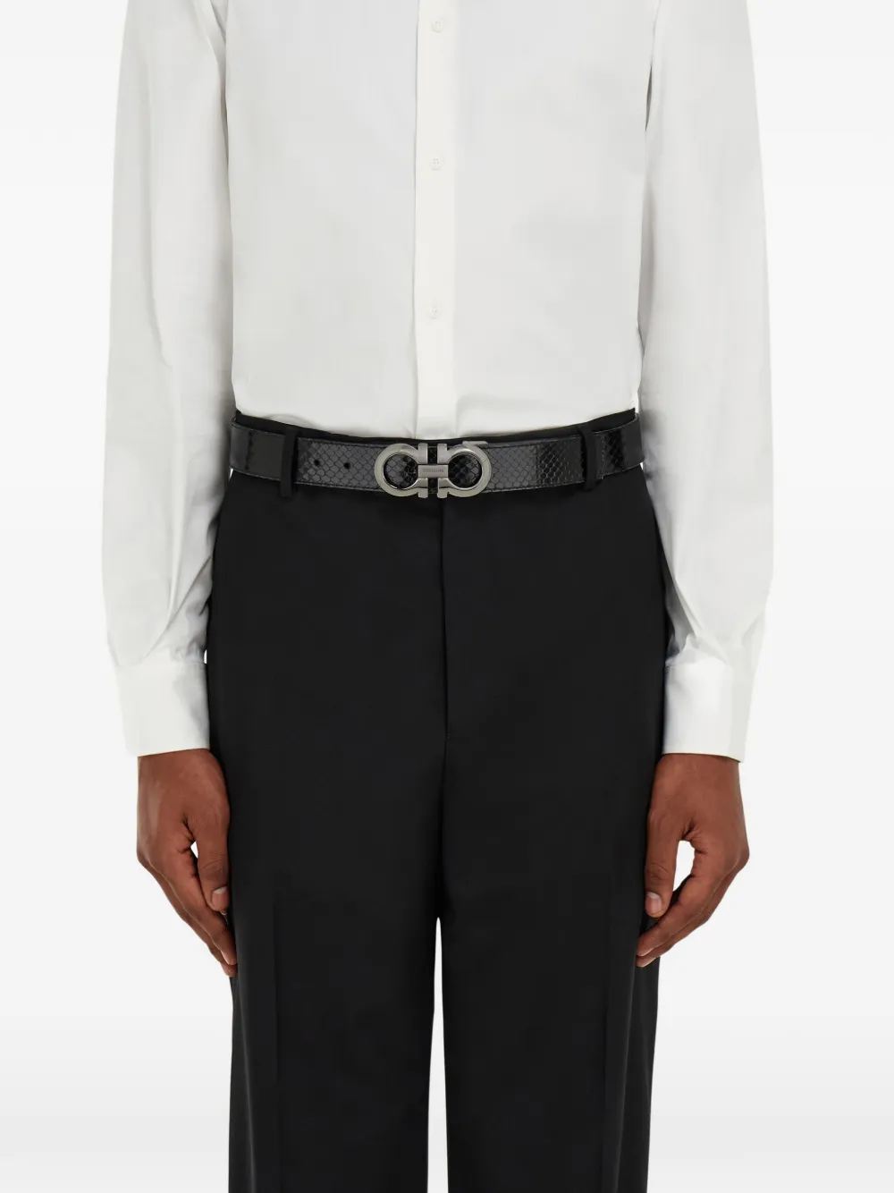 Роскошный вариант ремня Ferragamo, выполненный из ценной кожи питона с элегантным, слегка квадратным профилем. Яркий оттенок придает современный акцент любому образу. Регулируемая длина позволяет подобрать индивидуальную посадку и стиль. Рекомендуем ознакомиться с нашим справочником по размерам для получения более подробной информации. Пряжка Gancini черного цвета.