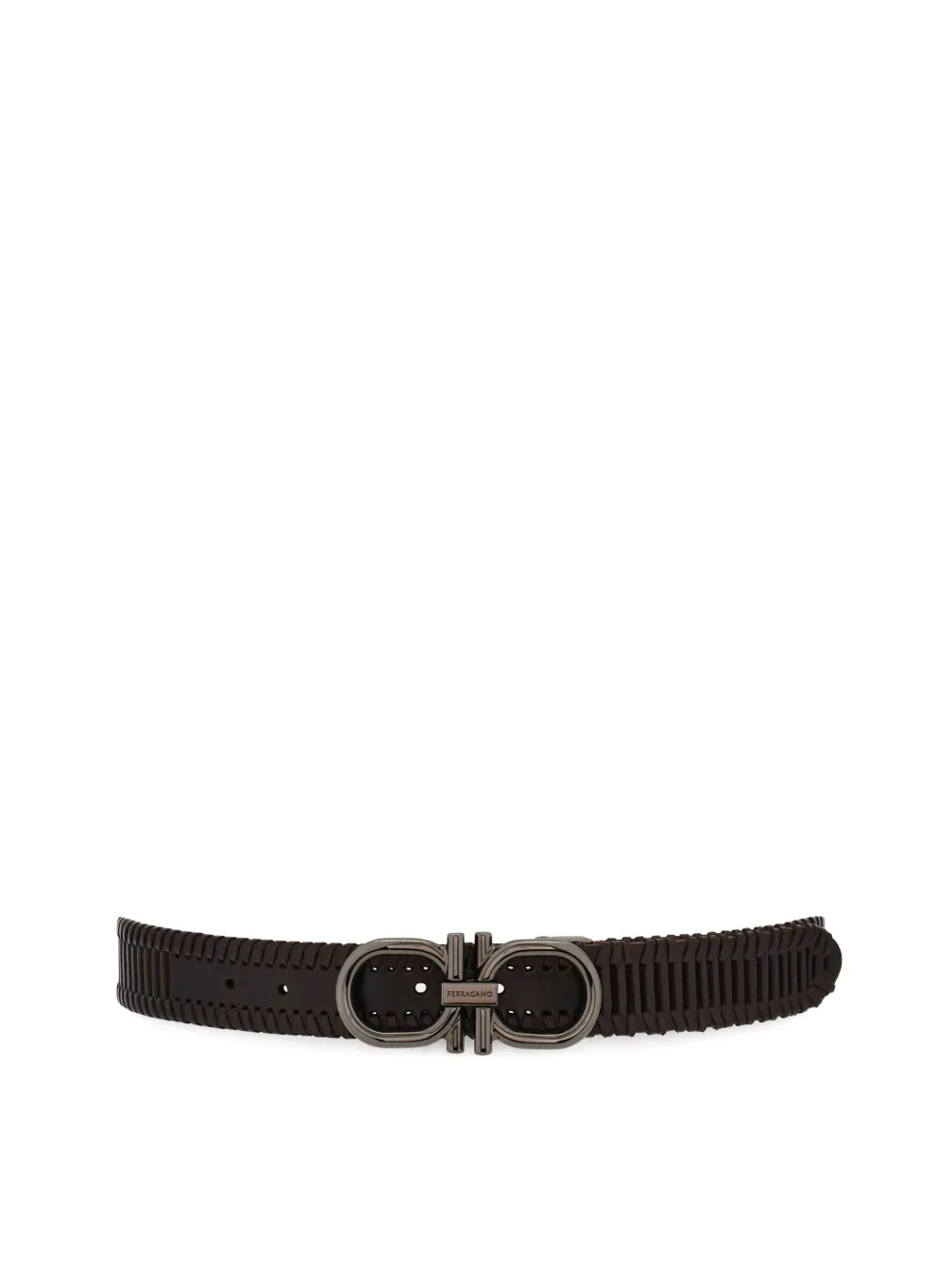 Черная плетеная телячья кожа, пряжка с двойным декором Gancini в виде проволочного каркаса, регулируемая длина