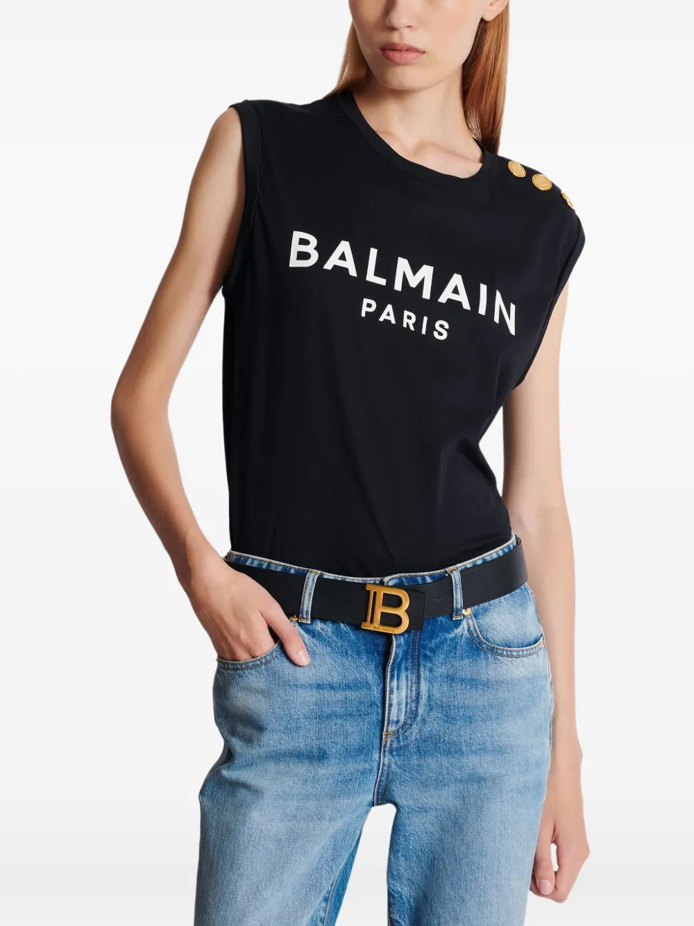 Ремень с B-образной пряжкой Balmain, черный