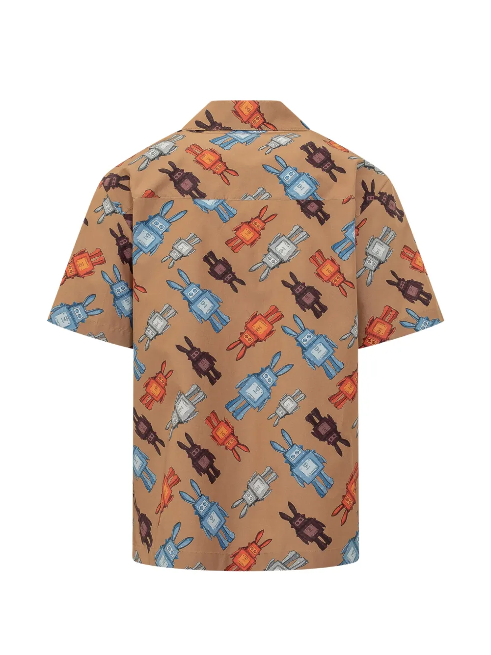 Коньячного цвета рубашка с графическим принтом, нагрудным карманом, застежкой на пуговицы, короткими рукавами и отложным воротником