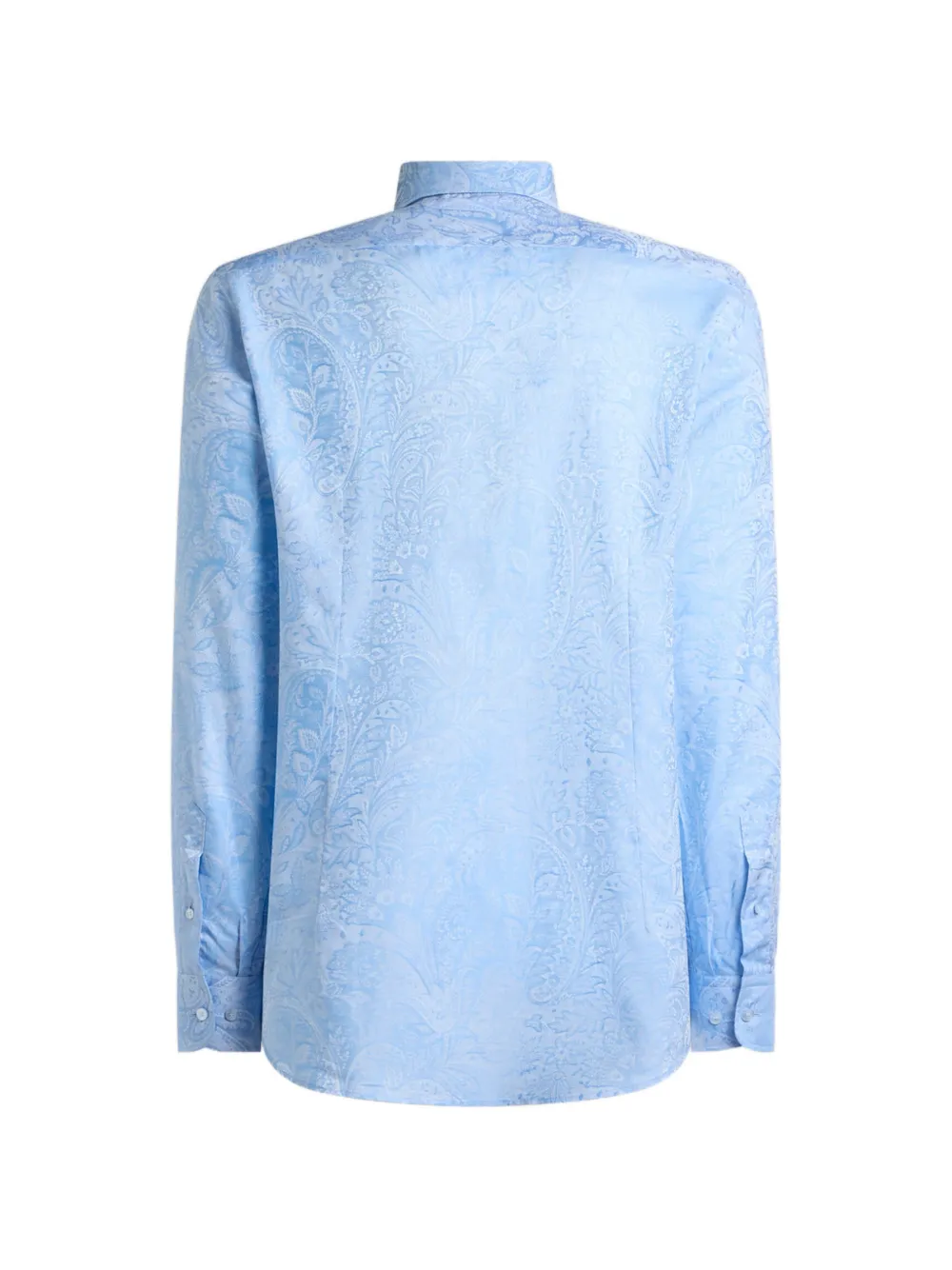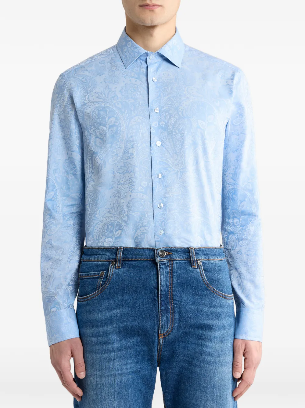 Светло-голубая рубашка из хлопка с принтом "пейсли" и лиственным мотивом, застежкой на пуговицы и длинными рукавами