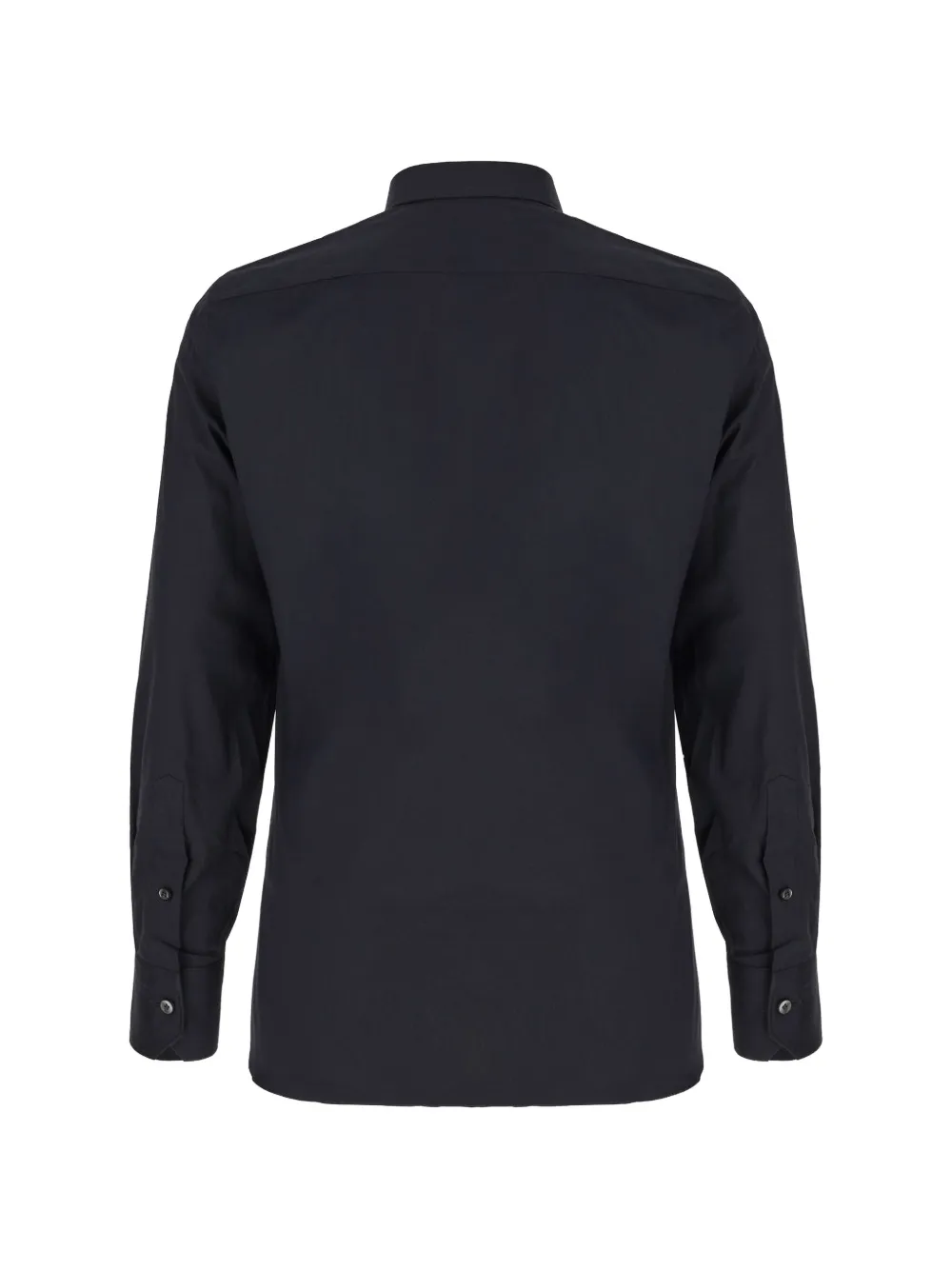 Темно-синяя рубашка с застежкой на пуговицы, длинными рукавами, манжетами на пуговицах и классическим воротником
