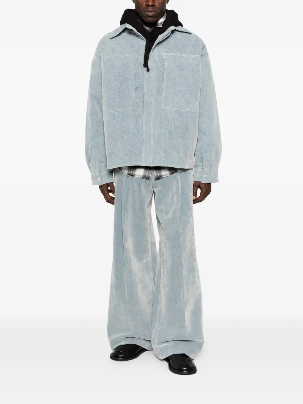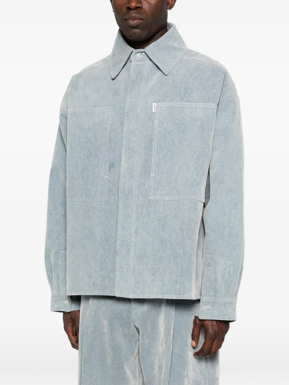 Синий oversize-кроя с накладными карманами, длинными рукавами, отложным воротником и манжетами на пуговицах