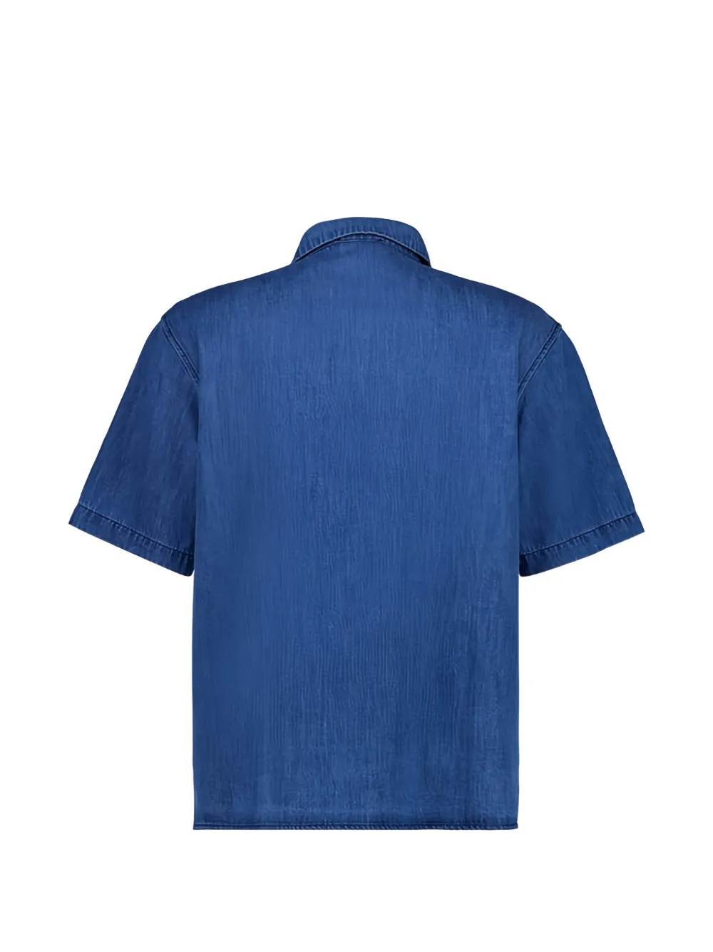 Синяя свободного кроя рубашка с цветочным декором, застежкой на пуговицы спереди и короткими рукавами