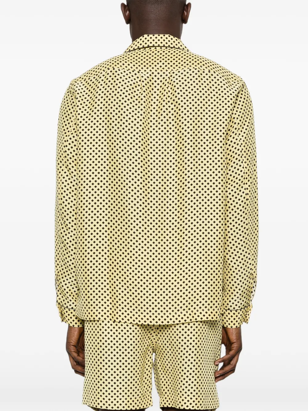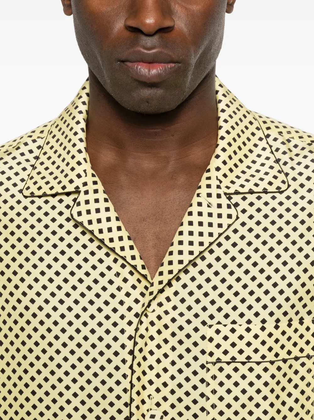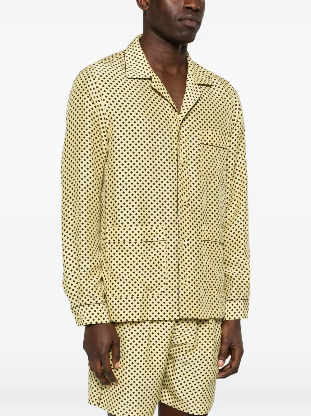 Желто-черный узор, нагрудный карман, классический воротник, длинные рукава, застежка на пуговицы
