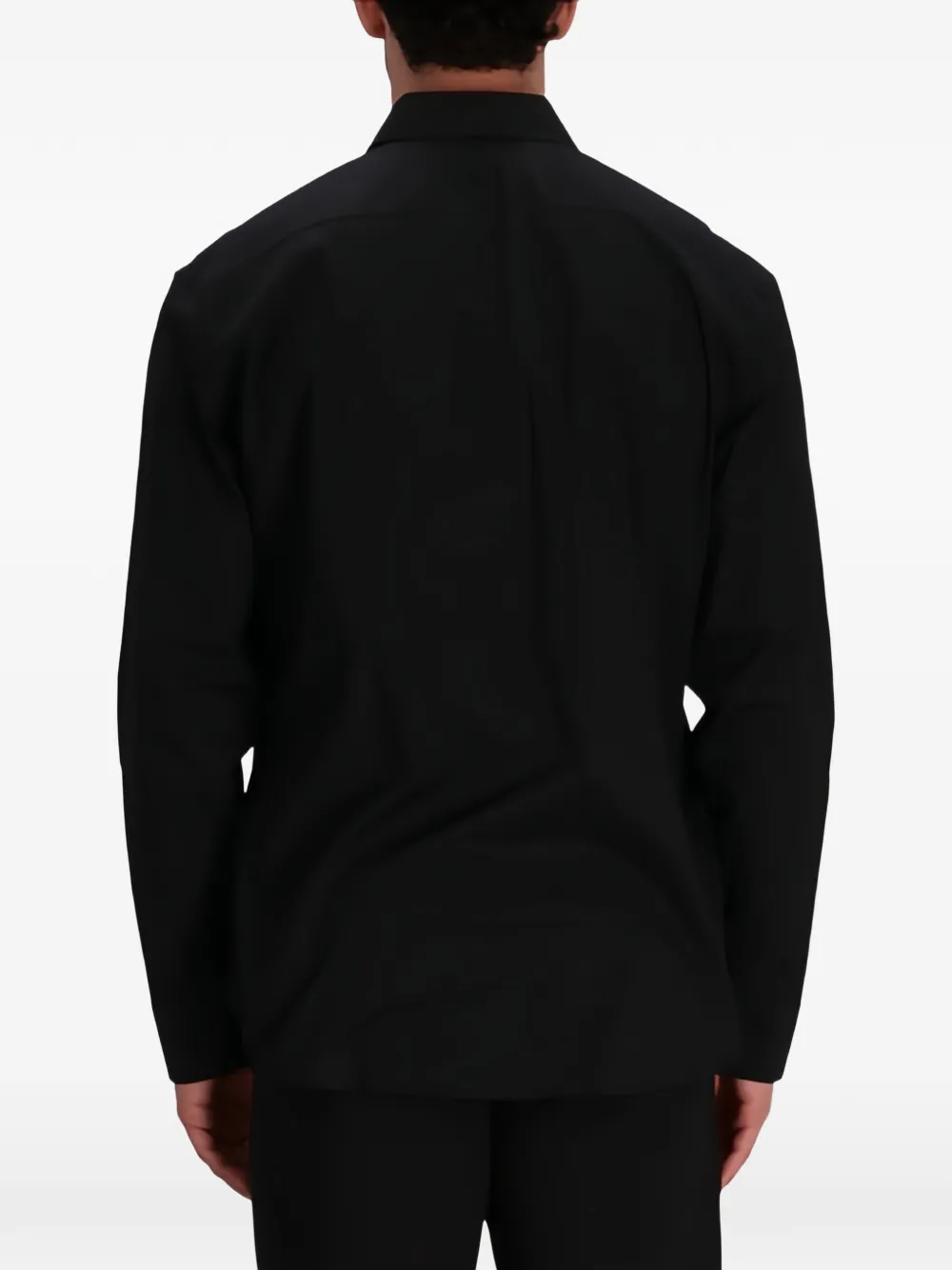 Черная рубашка с логотипом, застежкой на пуговицы, длинными рукавами и манжетами на пуговицах