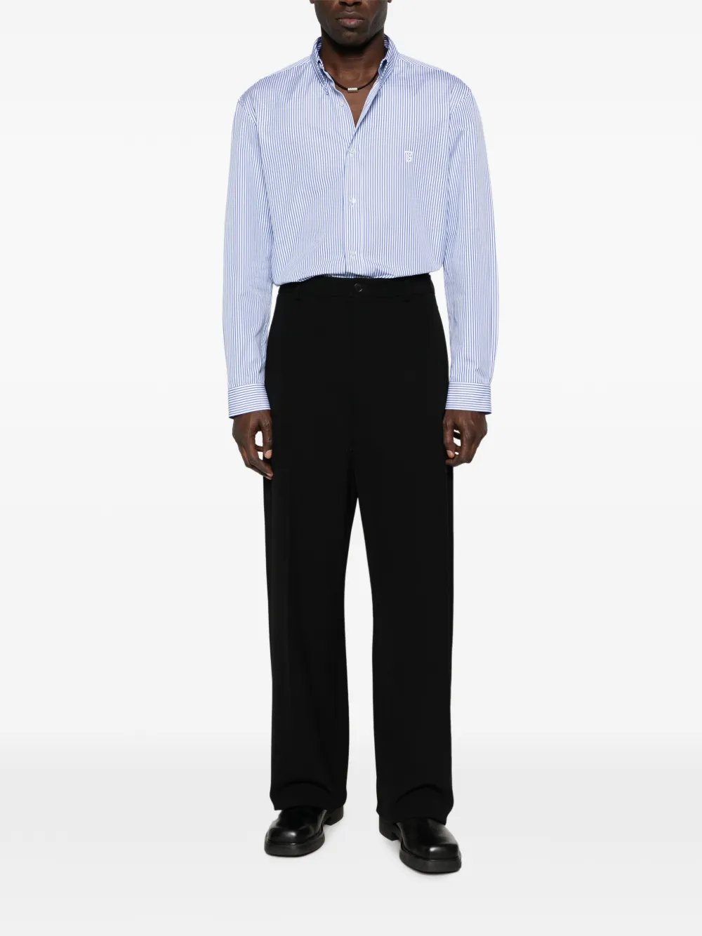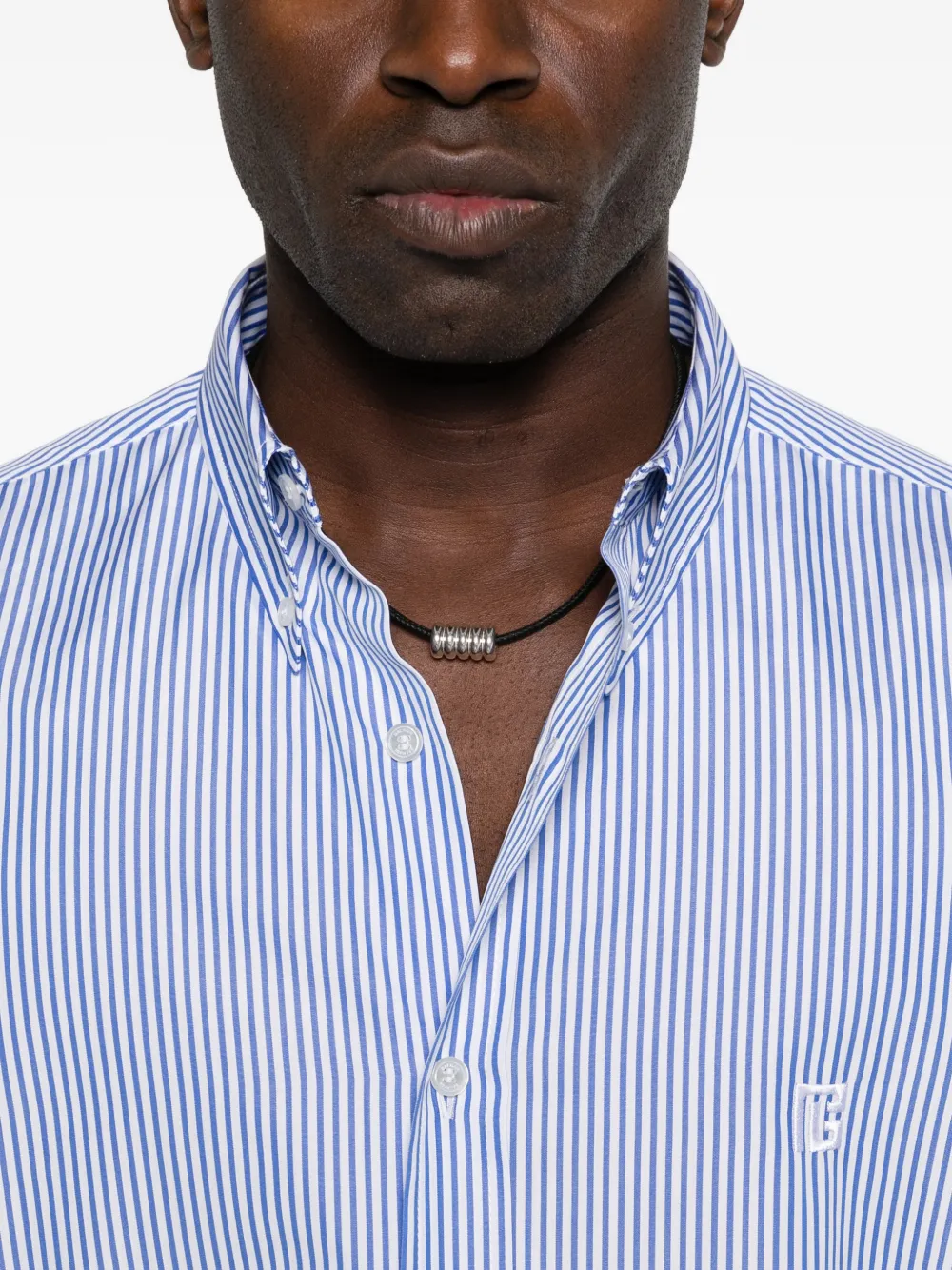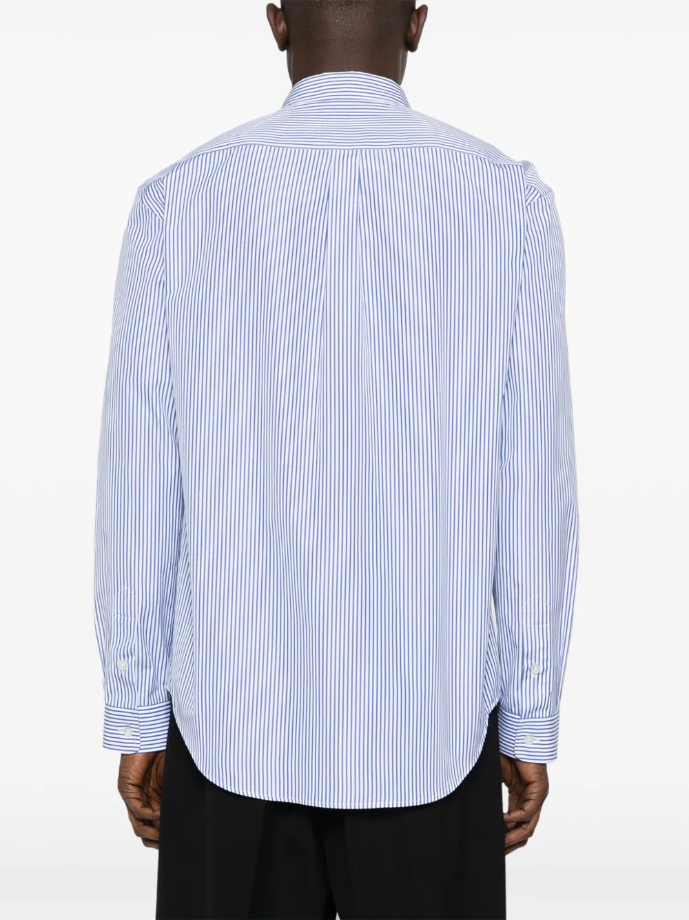 Синяя полосатая рубашка с застежкой на пуговицы, длинными рукавами и вышитым логотипом