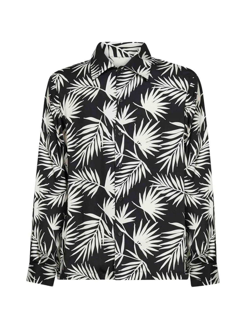 Черный с листовым принтом, застежка на пуговицы, длинные рукава, манжеты на пуговицах