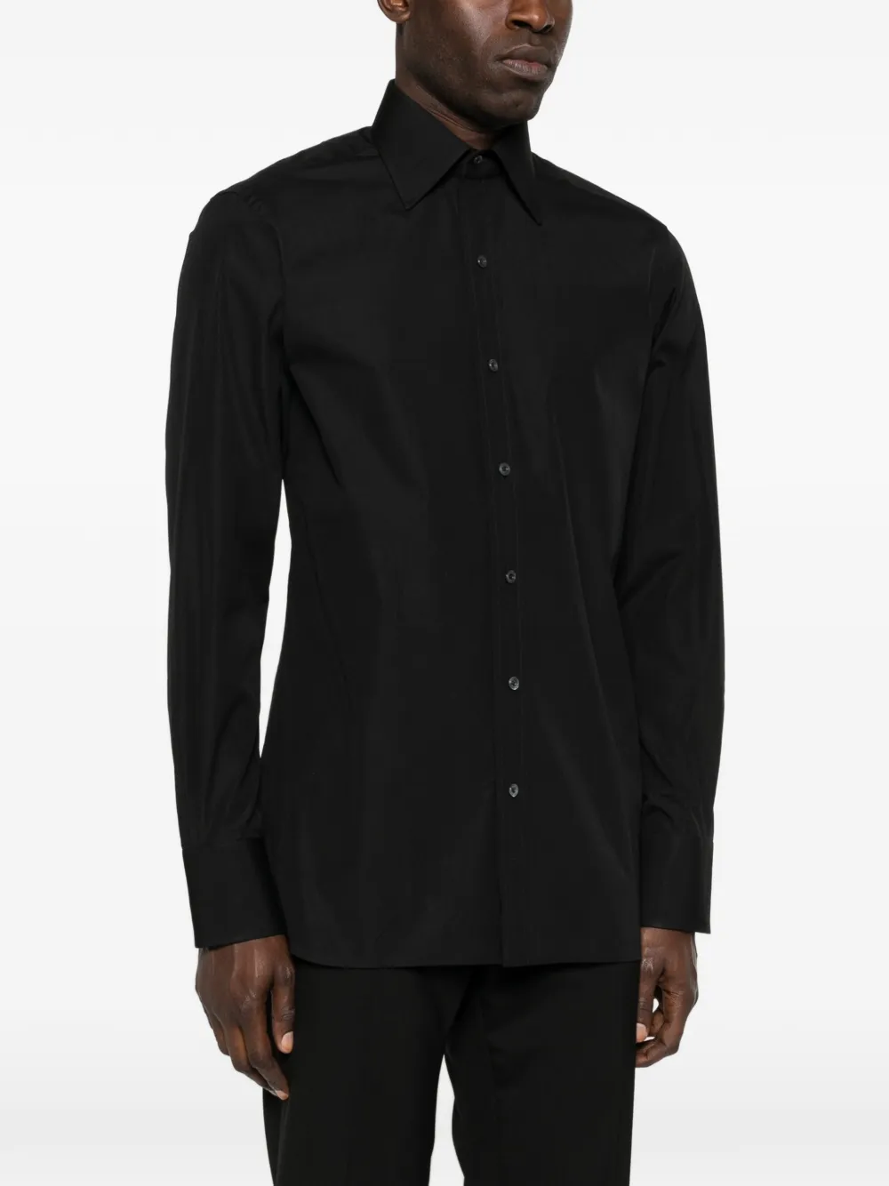 Черная рубашка с застежкой на пуговицы, длинными рукавами и отложным воротником