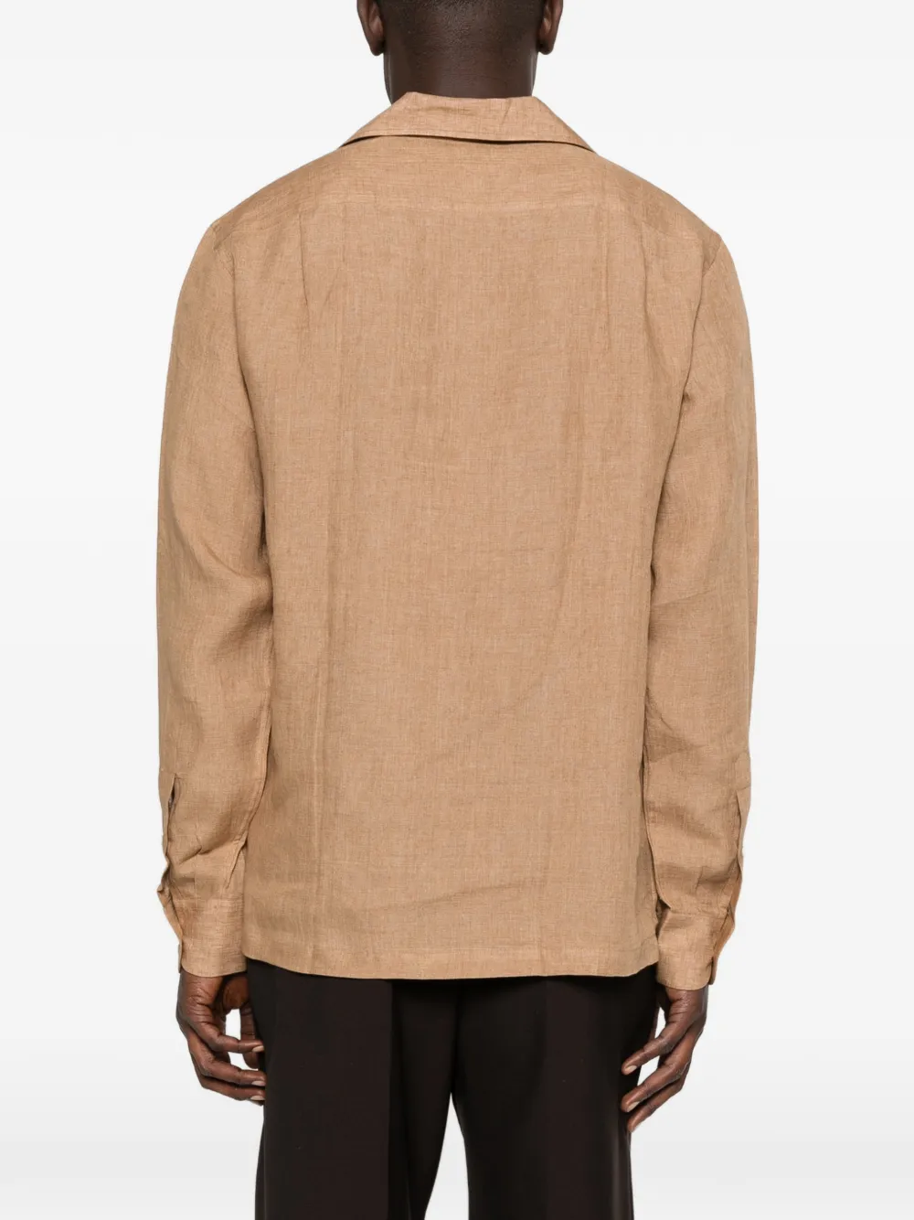 Светло-коричневая льняная рубашка с застежкой на пуговицы и длинными рукавами