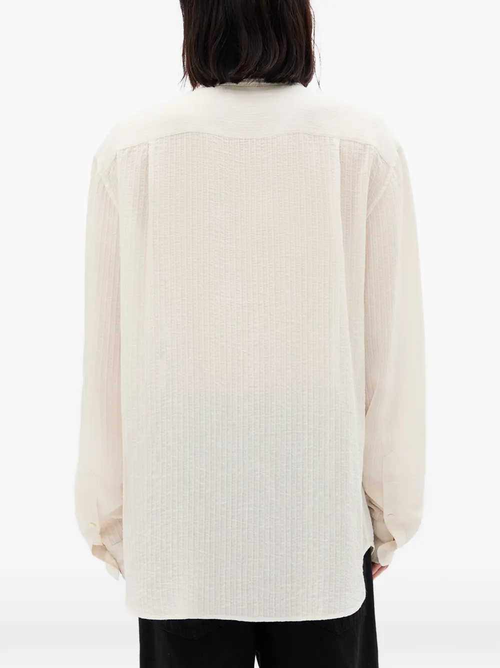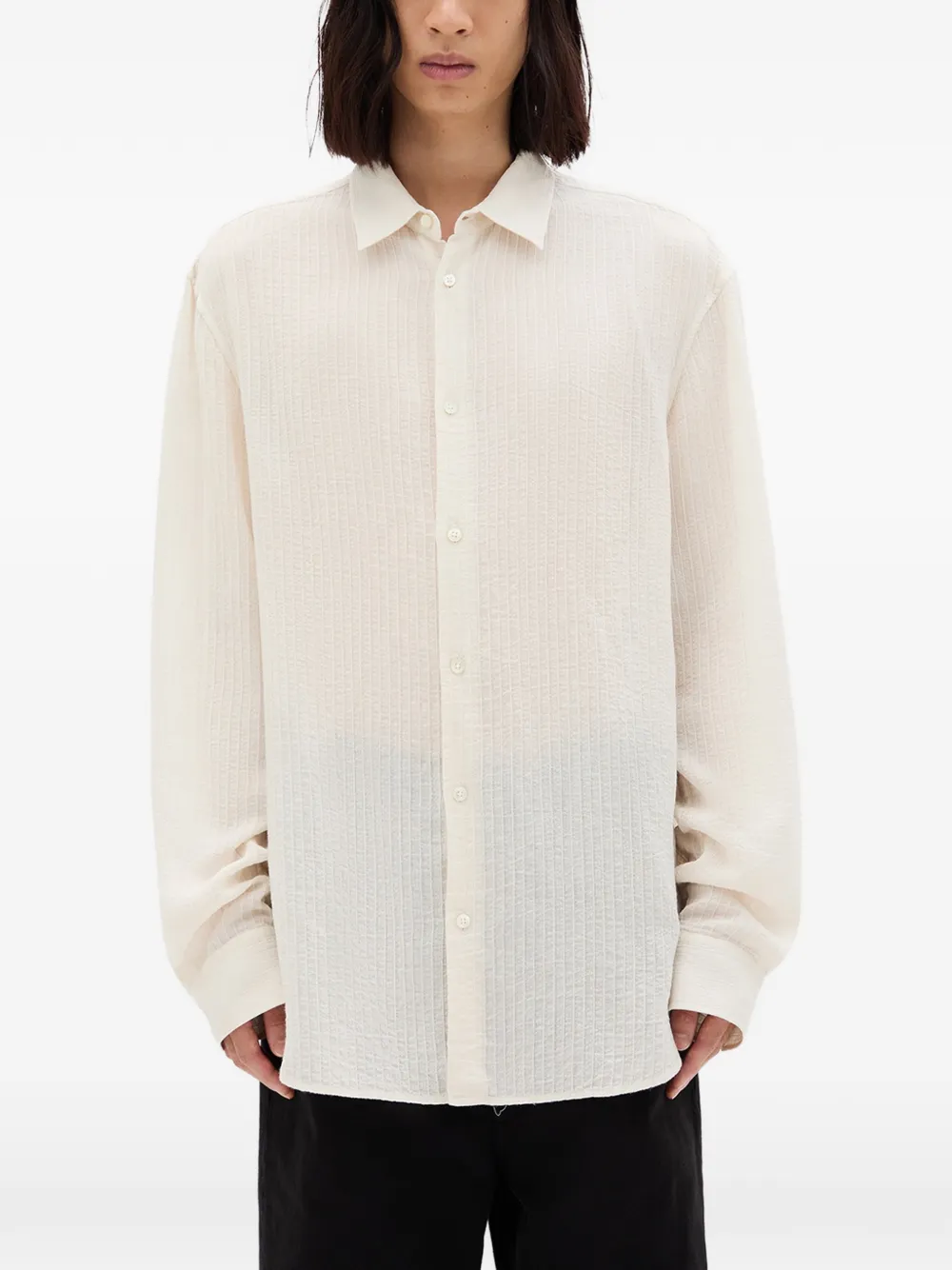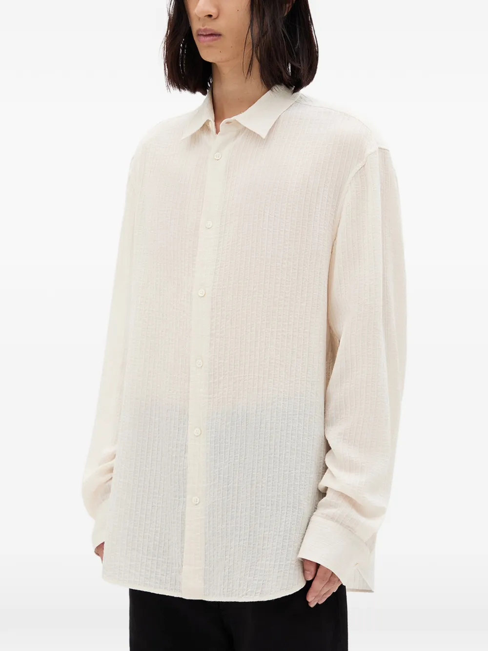Длинные рукава, застежка на пуговицы, текстурированная, молочно-белого цвета