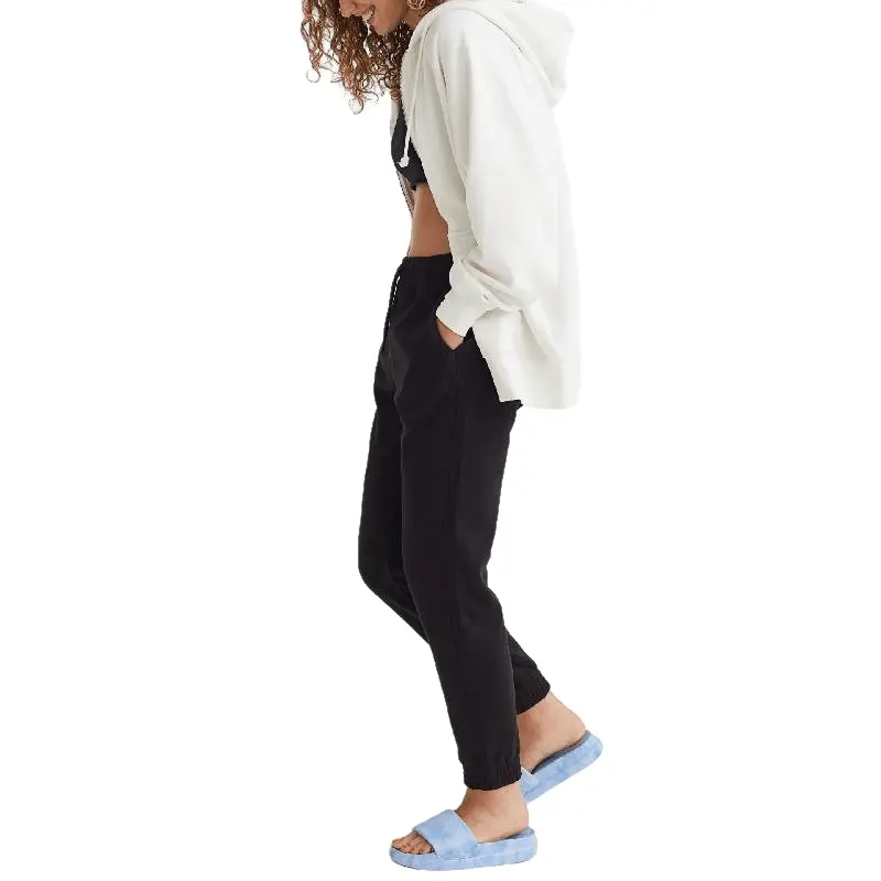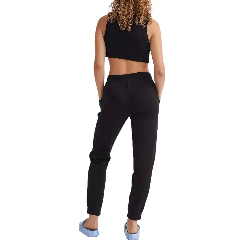 Джоггеры из мягкой спортивной ткани. Брюки с высокой посадкой, присборенным поясом на резинке и завязках, боковыми карманами и слегка зауженными штанинами с присборенной резинкой по низу.