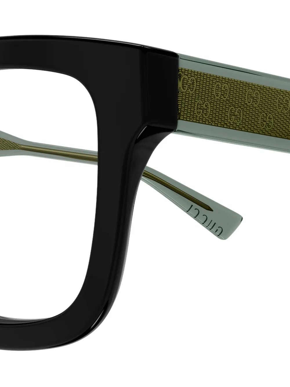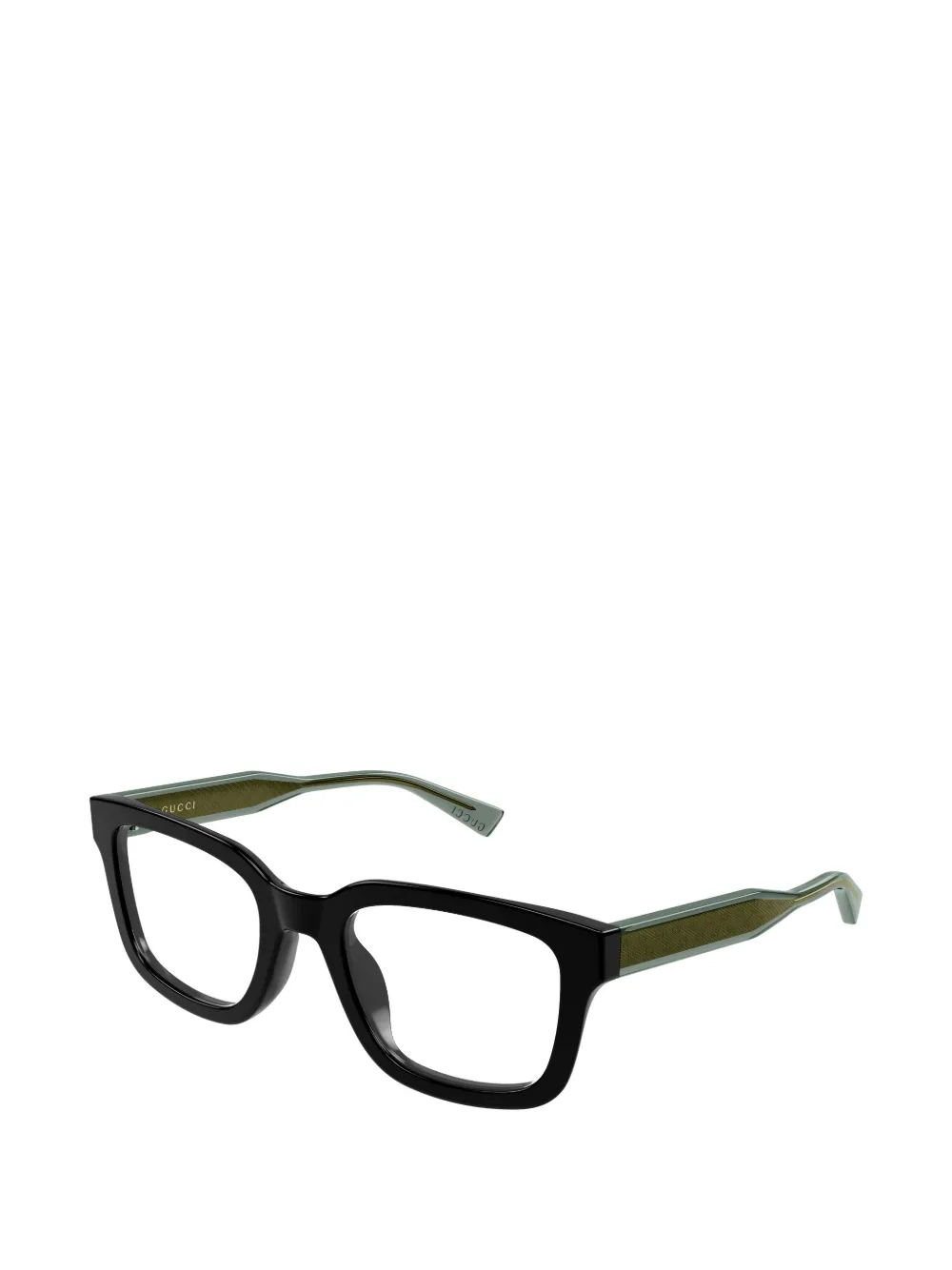 Черная квадратная оправа, узорчатые дужки, носовые упоры. Все очки на FARFETCH продаются как оправа без диоптрий. Эти очки поставляются с защитным футляром.