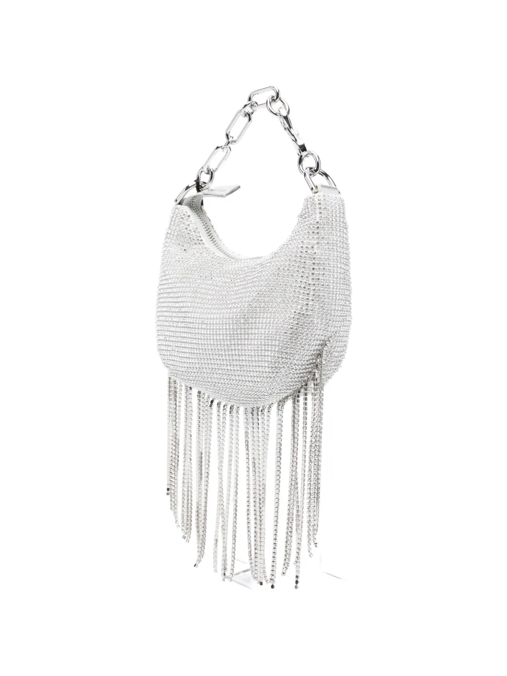 Ручка-цепочка серебристого оттенка, отделка с бахромой, застежка на молнию, съемный ремешок. В комплекте идет защитный мешочек для хранения.