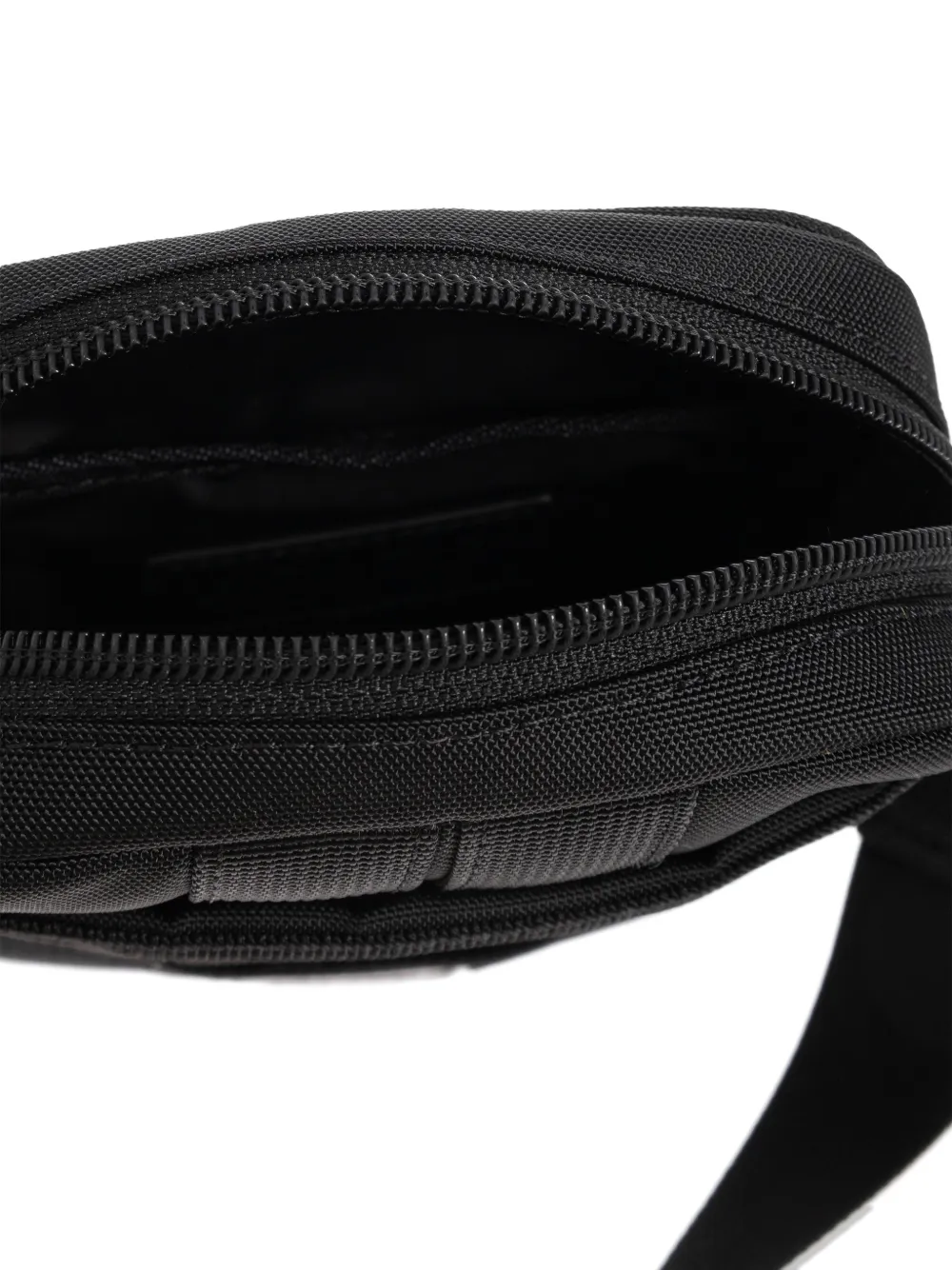 Черные горизонтальные ремешки, нашивка с логотипом спереди, регулируемый плечевой ремень, застежка на молнии, узелковая отделка