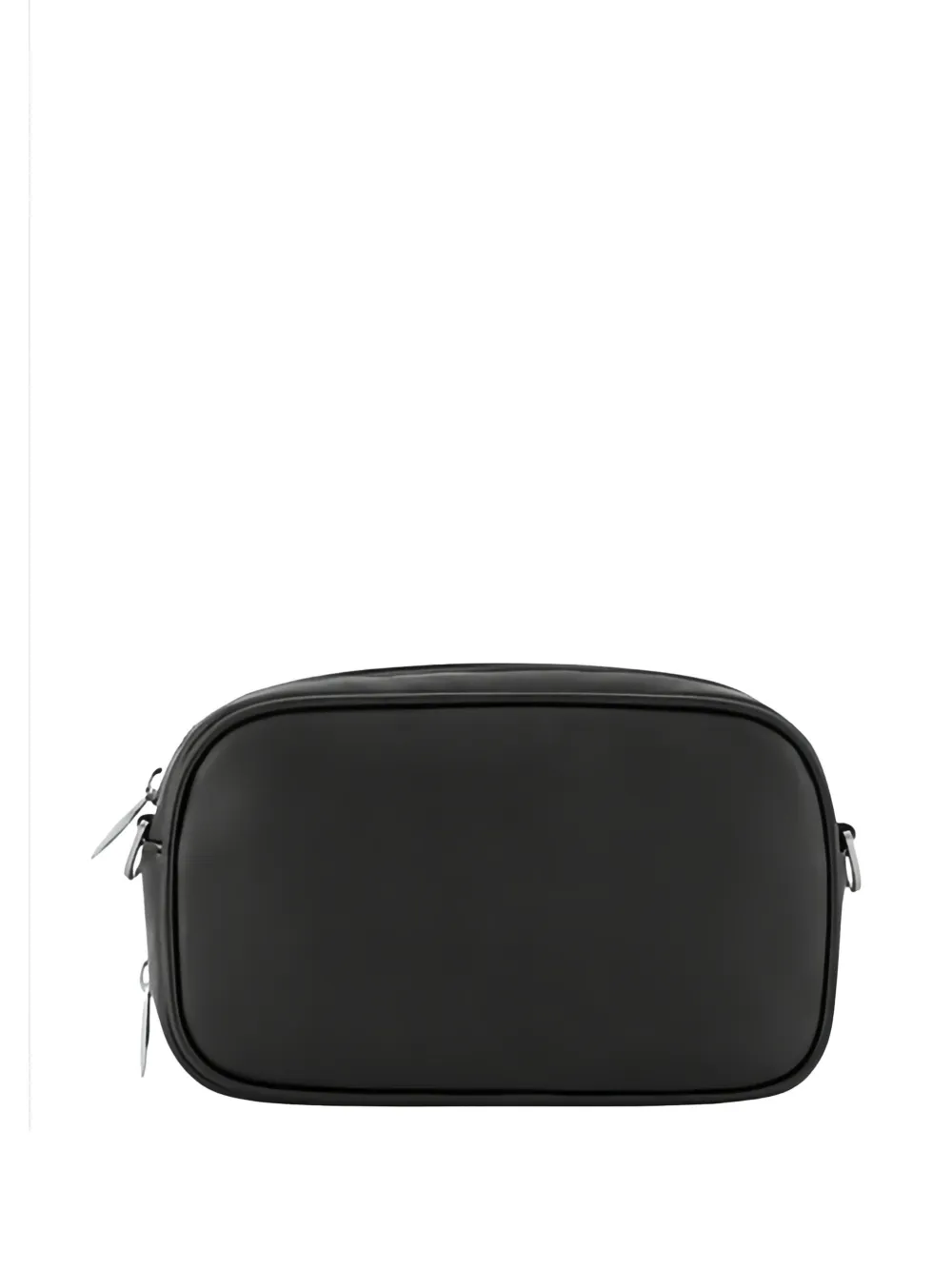 Черная прямоугольная форма, застежка-молния, табличка с логотипом, регулируемый ремень, фурнитура серебристого тона