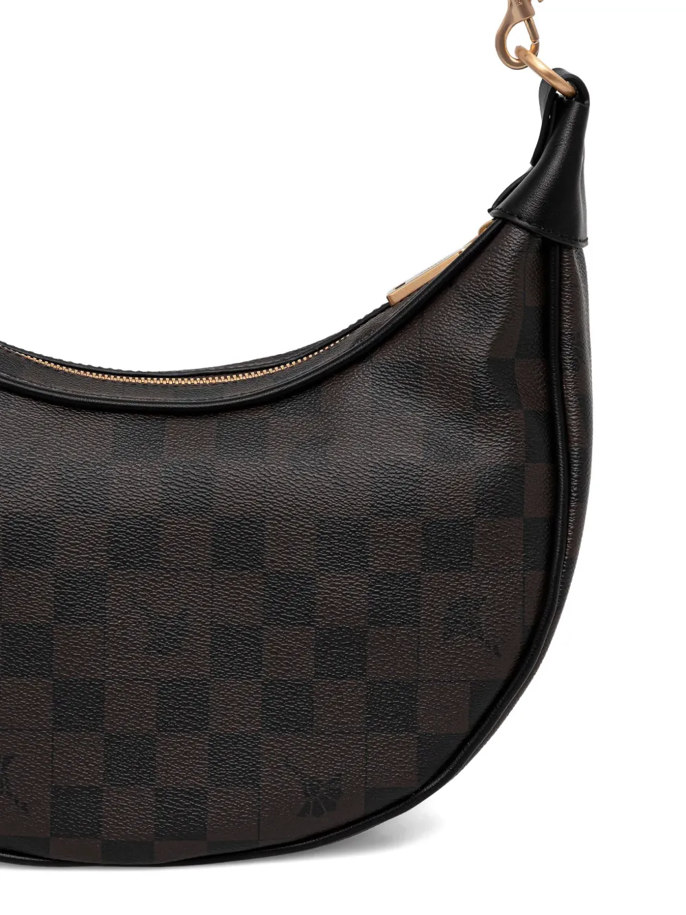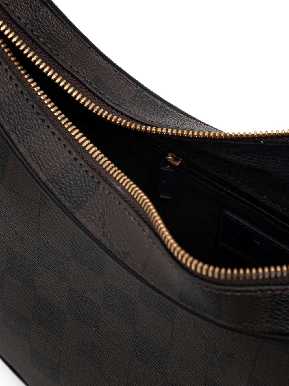 Коричневый топ с клетчатым узором, застежка-молния сверху, съемный ремешок, внутренний открытый карман