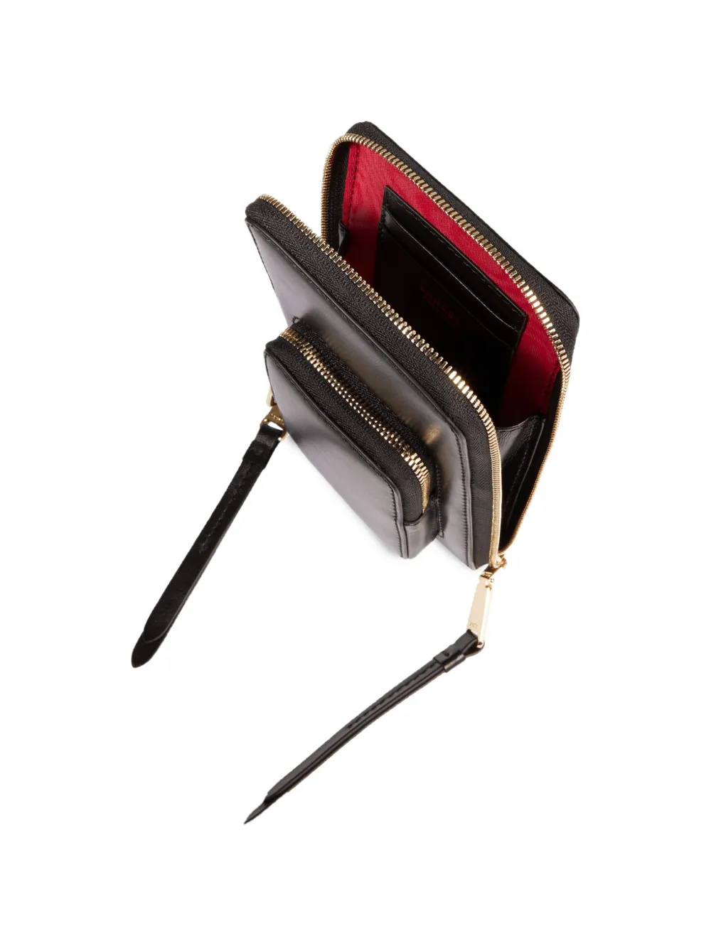 Черный, фурнитура под золото, застежка-молния, передний карман, регулируемый плечевой ремень