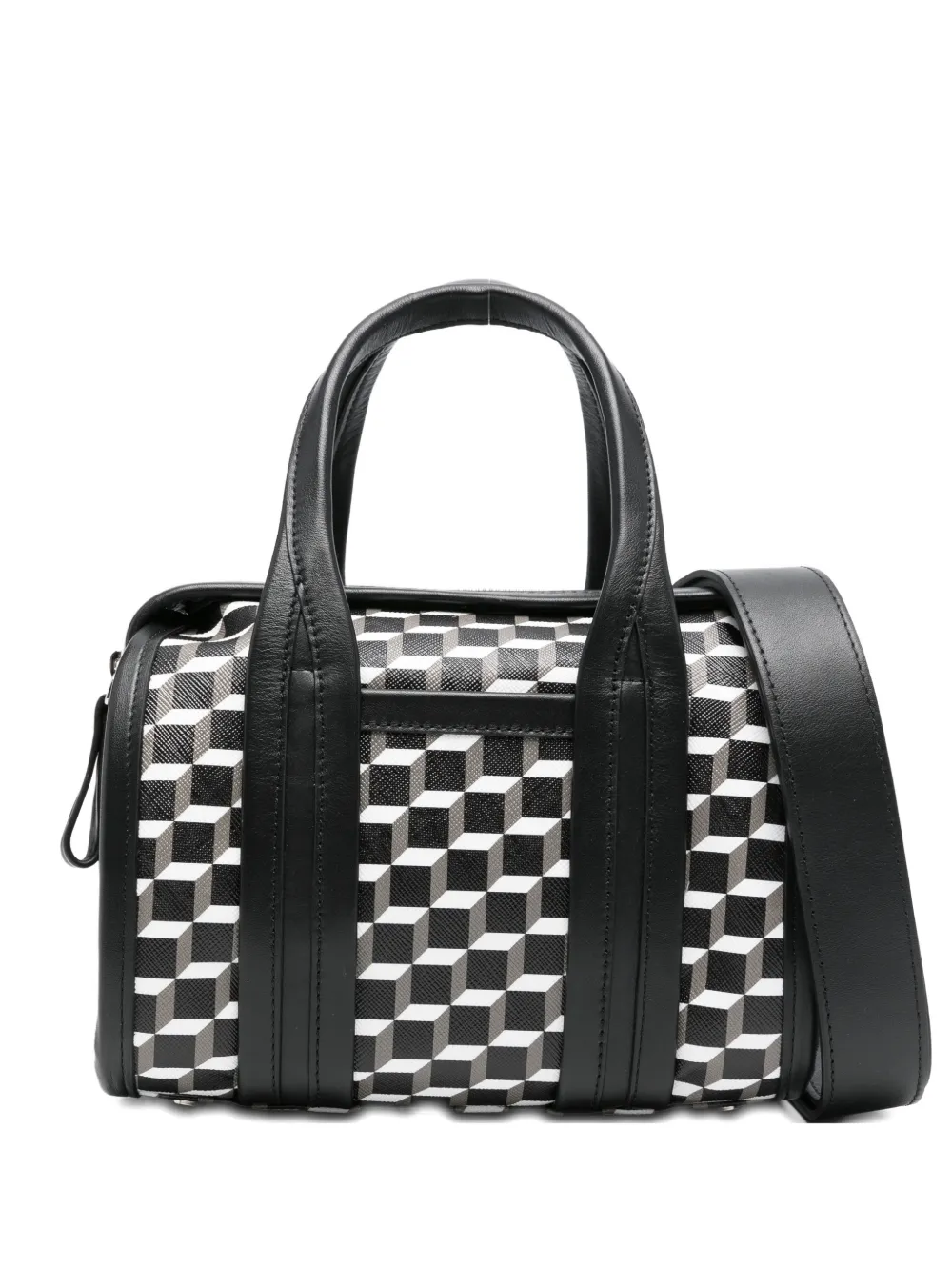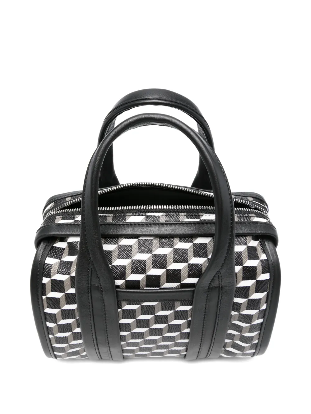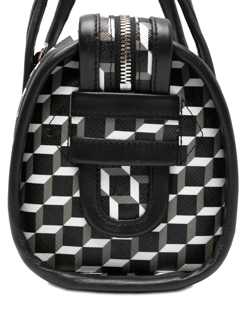 Ручки сверху, застежка-молния, геометрический узор в белом и черном цвете