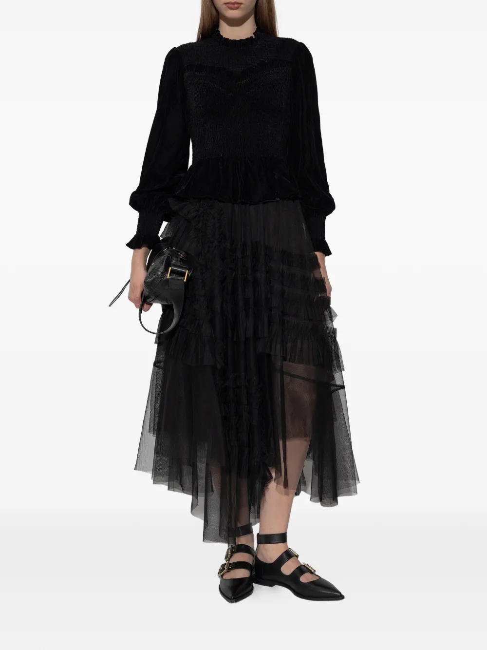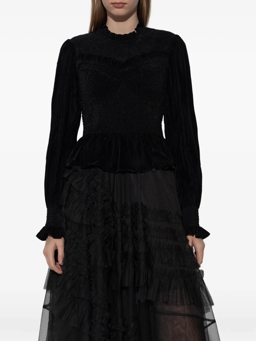 Топ с оборками Allsaints, черный