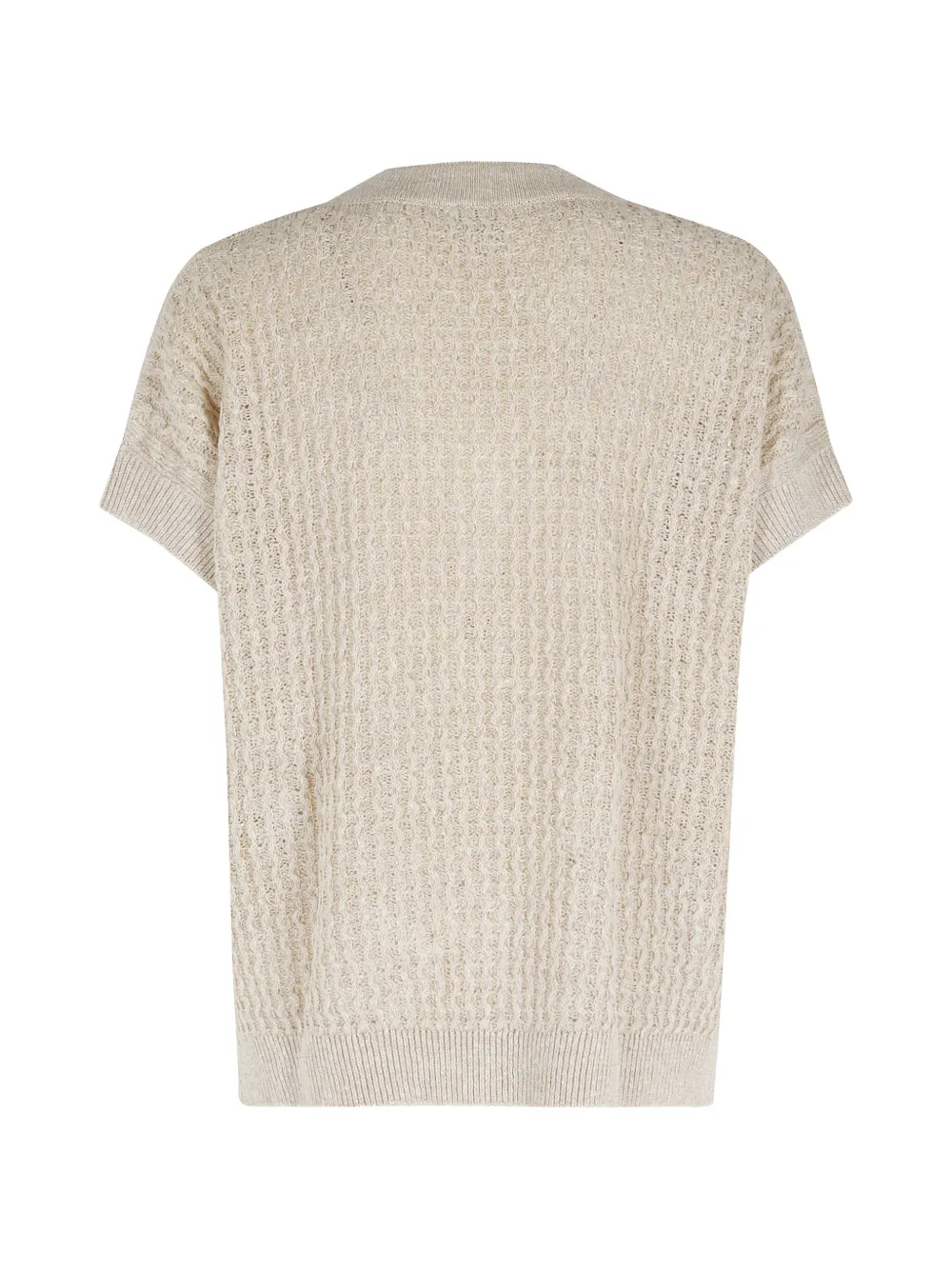 Слоново-костяной вязаный пуловер с V-образным вырезом, короткими рукавами, ребристым подолом и ребристыми манжетами