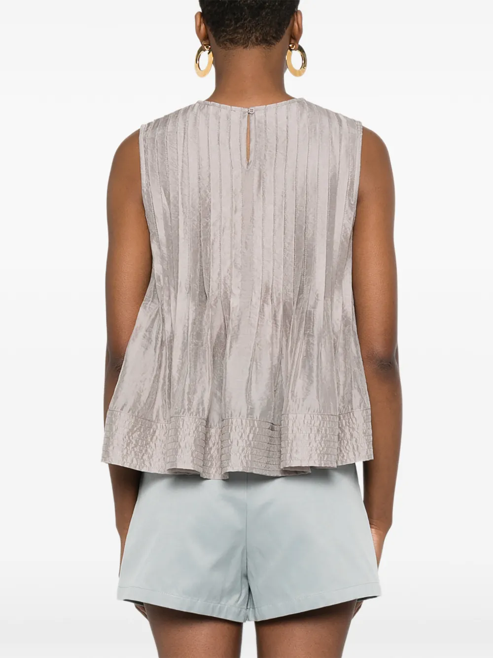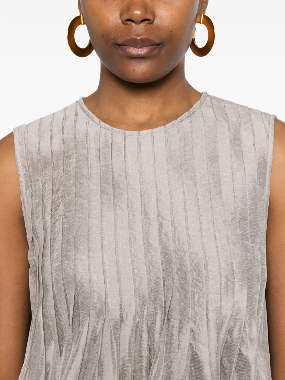Серый топ без рукавов с круглым вырезом, плиссированными деталями и присборенным подолом