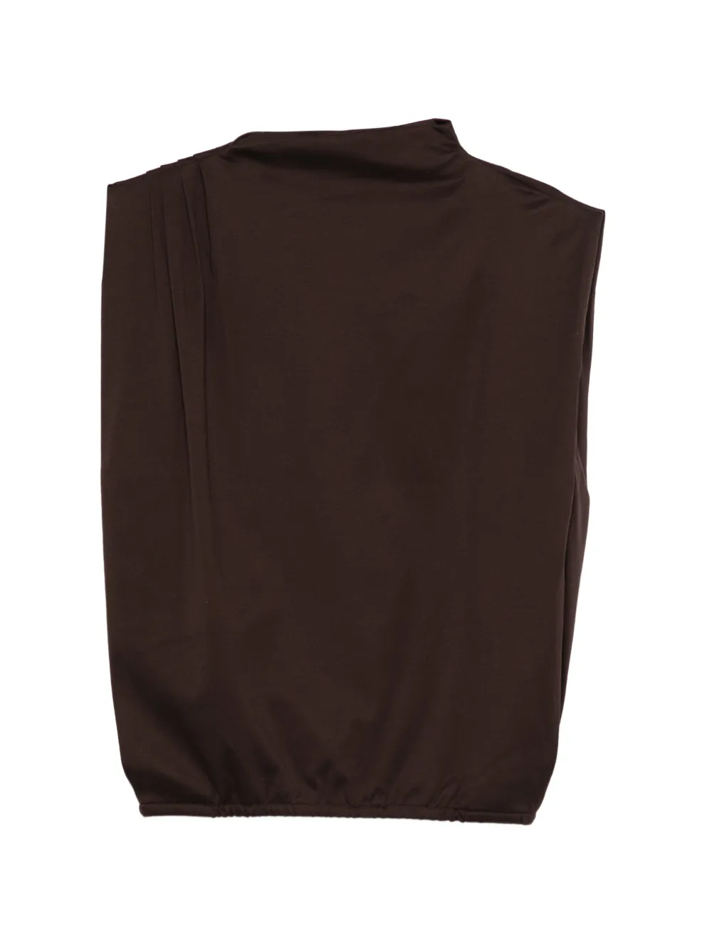 Темно-коричневый топ без рукавов с драпировкой, воротником-стойкой и эластичным низом